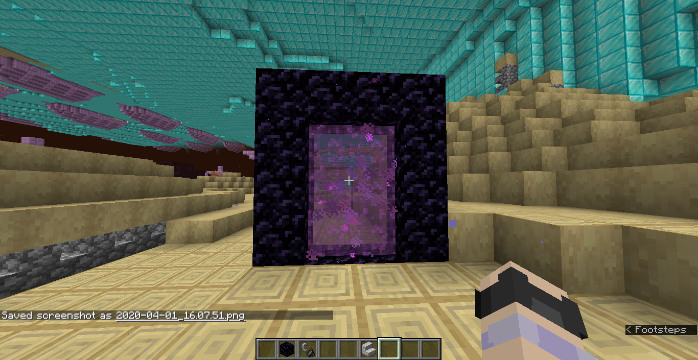Ahora se viene lo raro, escribe un libro cualquiera, firmalo y echalo al portal (New... me acordé de ti), el portal cambiará el típico color púrpura a uno de color aleatorio, entra y... a explorar! Si quieres otro mundo, hazte un nuevo portal (O si estás cerca del que hiciste), escribe un libro y firmalo, y dropealo en el portal... otro mundo te espera... y así hasta el infinito...