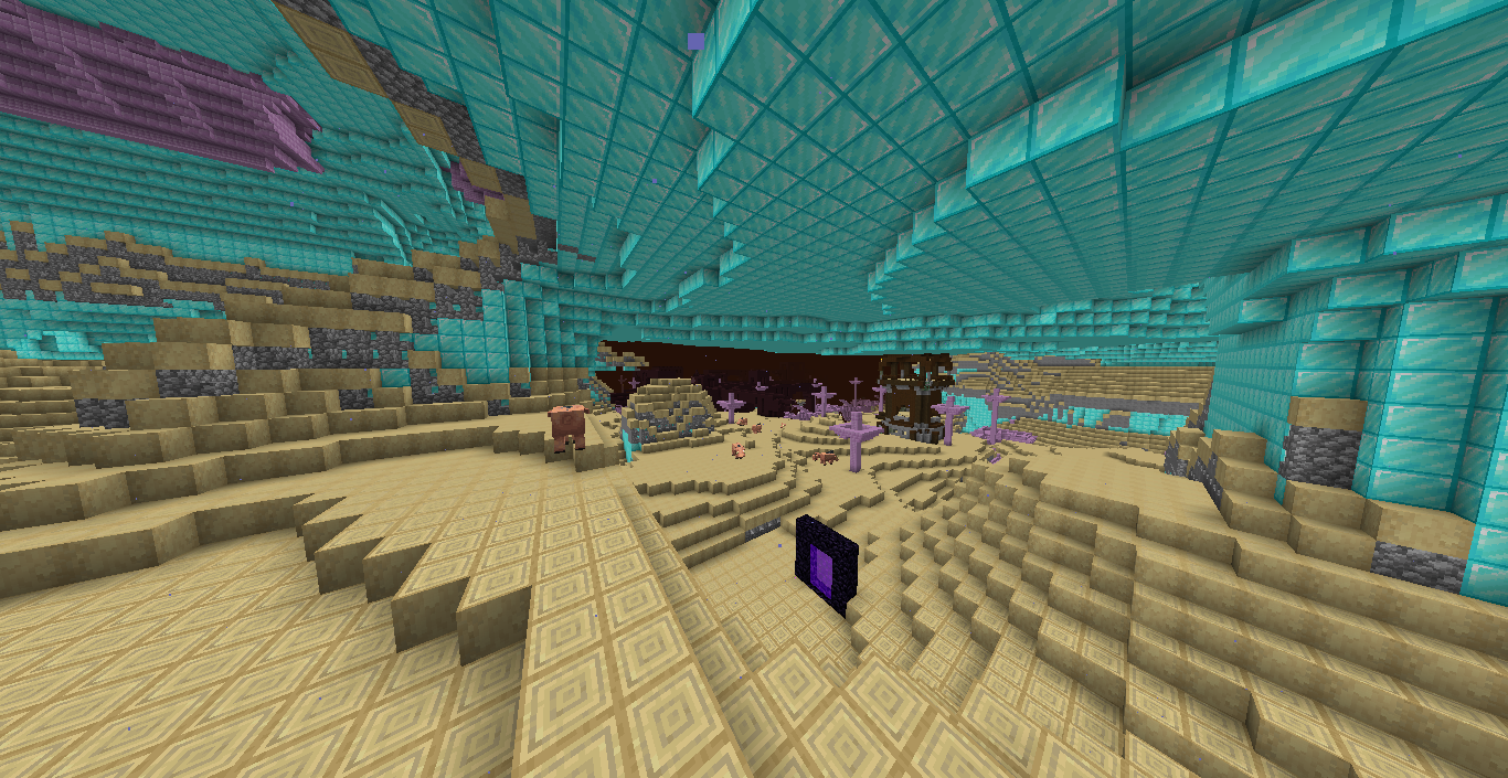 Ahora se viene lo raro, escribe un libro cualquiera, firmalo y echalo al portal (New... me acordé de ti), el portal cambiará el típico color púrpura a uno de color aleatorio, entra y... a explorar! Si quieres otro mundo, hazte un nuevo portal (O si estás cerca del que hiciste), escribe un libro y firmalo, y dropealo en el portal... otro mundo te espera... y así hasta el infinito...