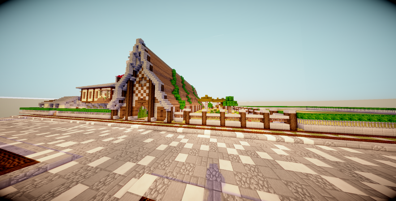 - Al ESTE, tenemos " :silla: el establo :silla:" aunque yo hice el boceto del diseño, pinpi y aviador, se han encargado de darle forma a este edificio y el resultado es hermoso con un tejado alto, cubierto de hojas y enredaderas, aparte de su ancho redil donde los caballos pasean. Tan fácil como traer para reproducir y un caballo gratis para ti en la ciudad :manzana: :guay: .
