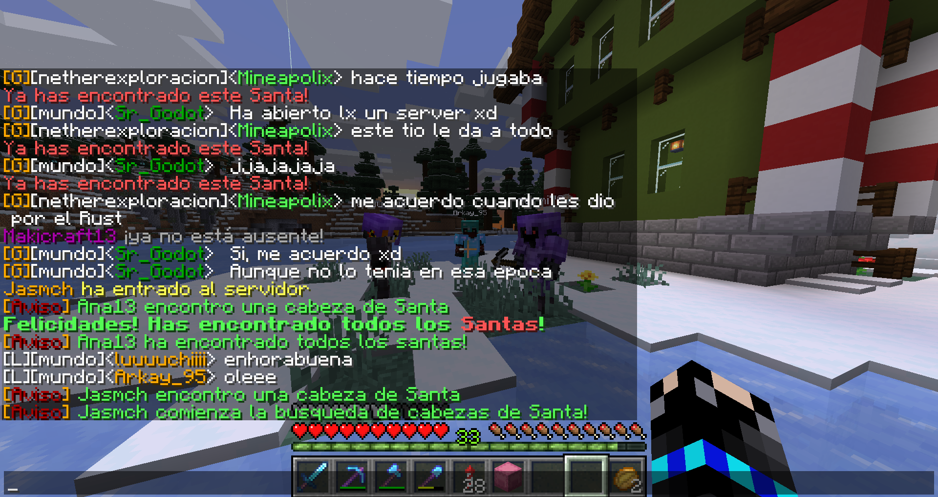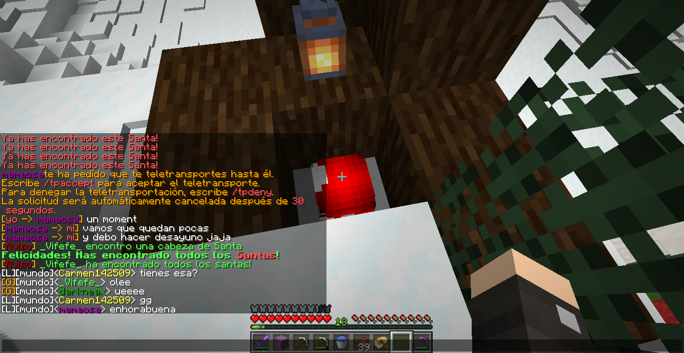 Recordar que para empezar a buscar tenéis que escribir en el chat /warp navidad y tendréis una cabeza de santa nada más salir para comenzar la búsqueda y que sepáis que mañana ya podréis ver vuestros regalos en el sótano del barco :P