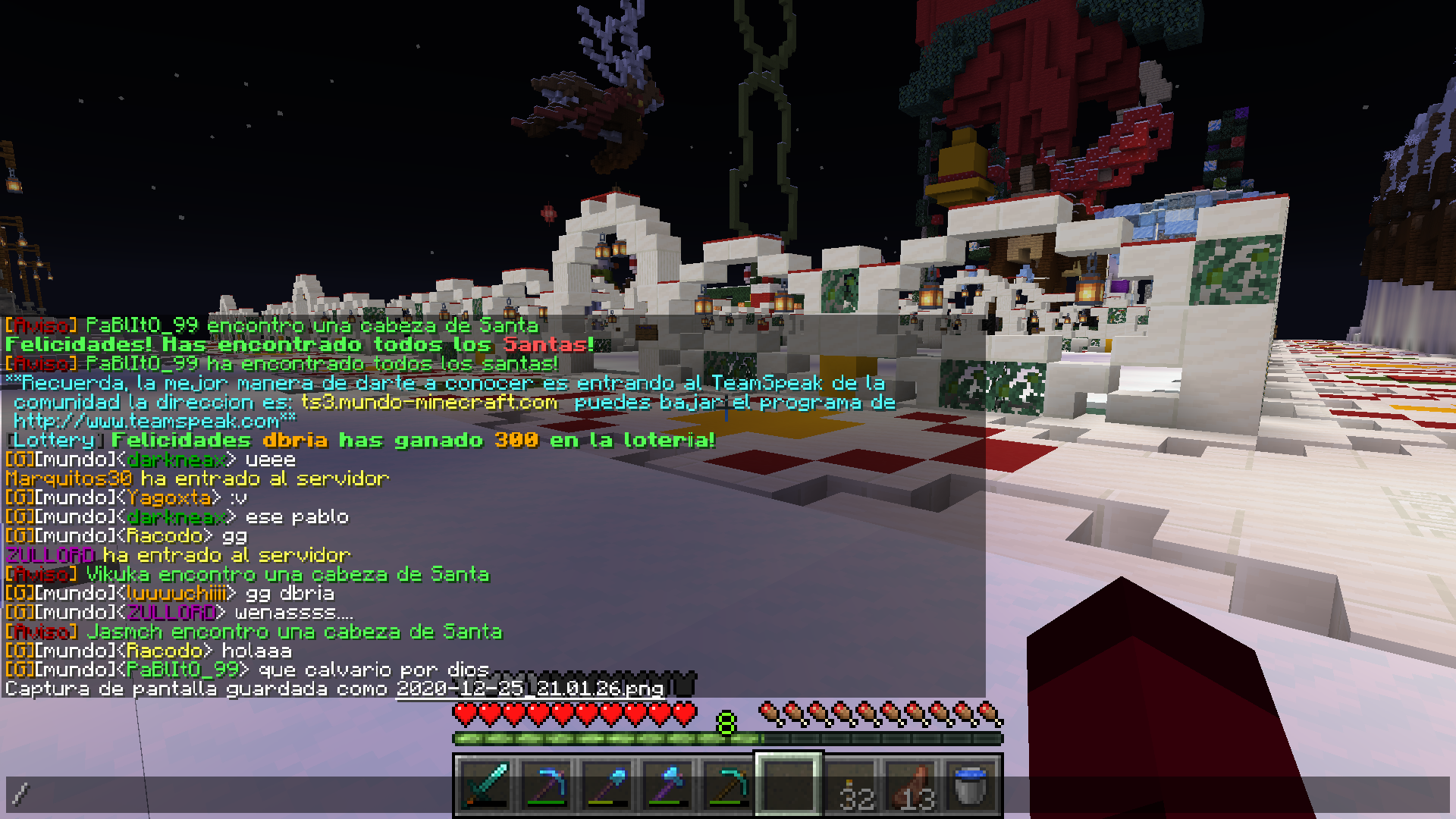 Mañana 25 de diciembre ponemos en marcha una búsqueda de cabezas de Santa Claus en /warp navidad.