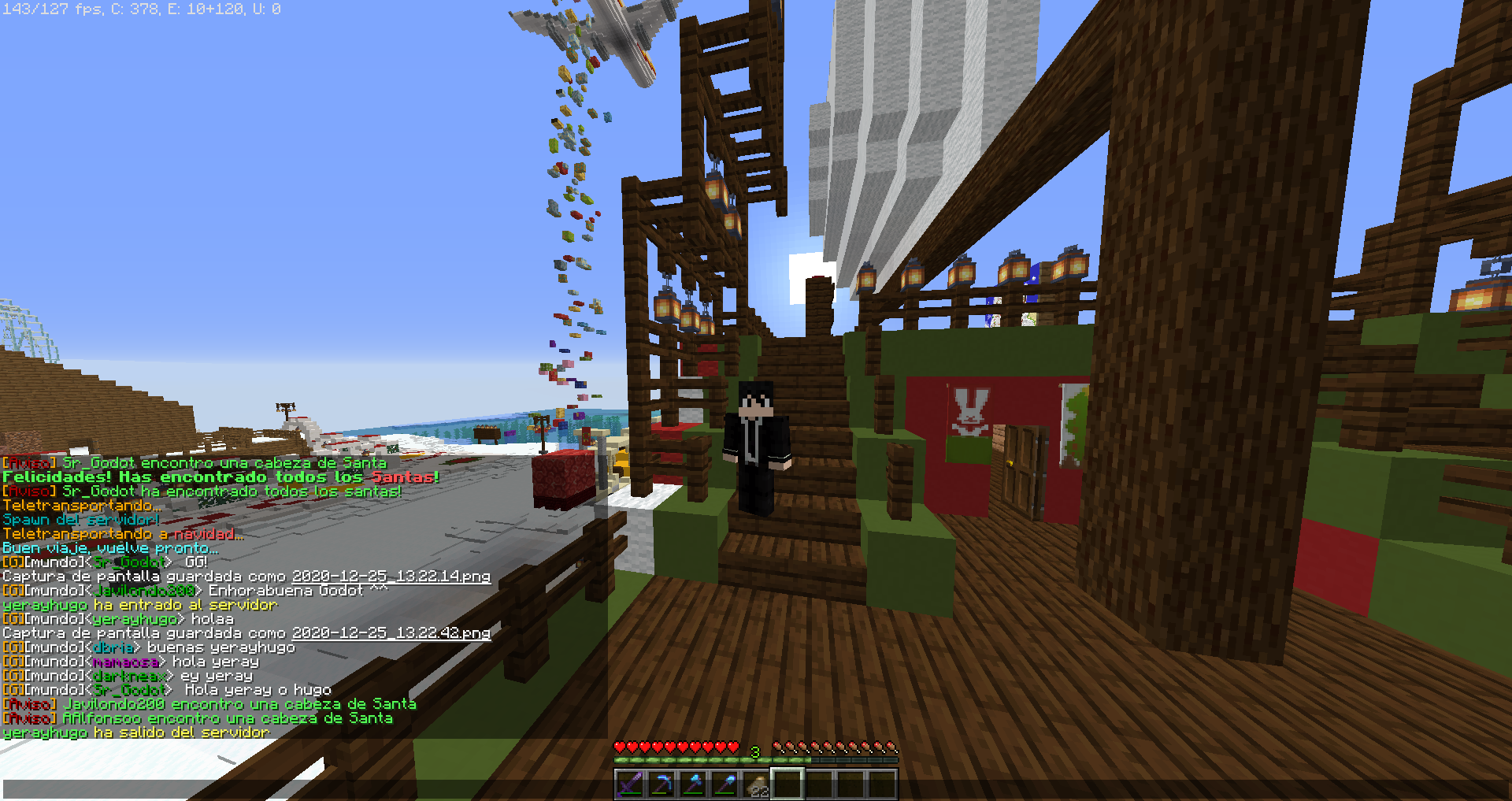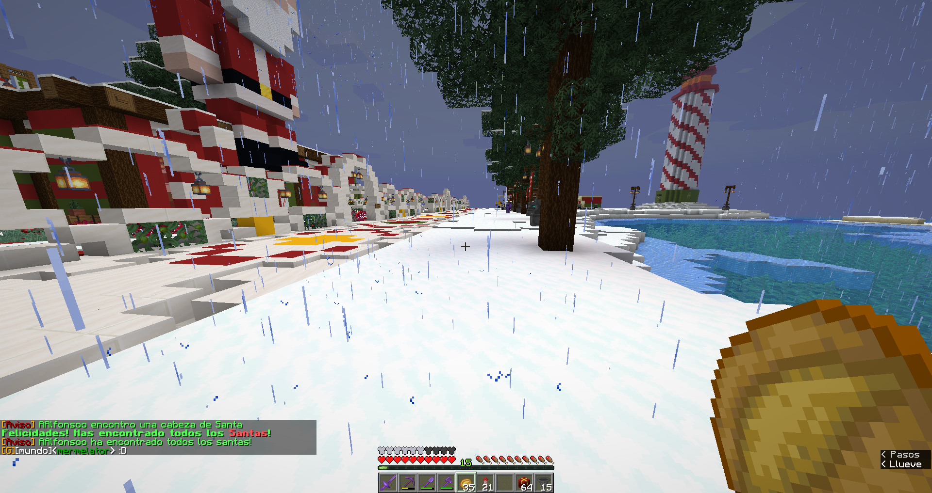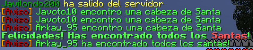 Recordar que para empezar a buscar tenéis que escribir en el chat /warp navidad y tendréis una cabeza de santa nada más salir para comenzar la búsqueda y que sepáis que mañana ya podréis ver vuestros regalos en el sótano del barco :P