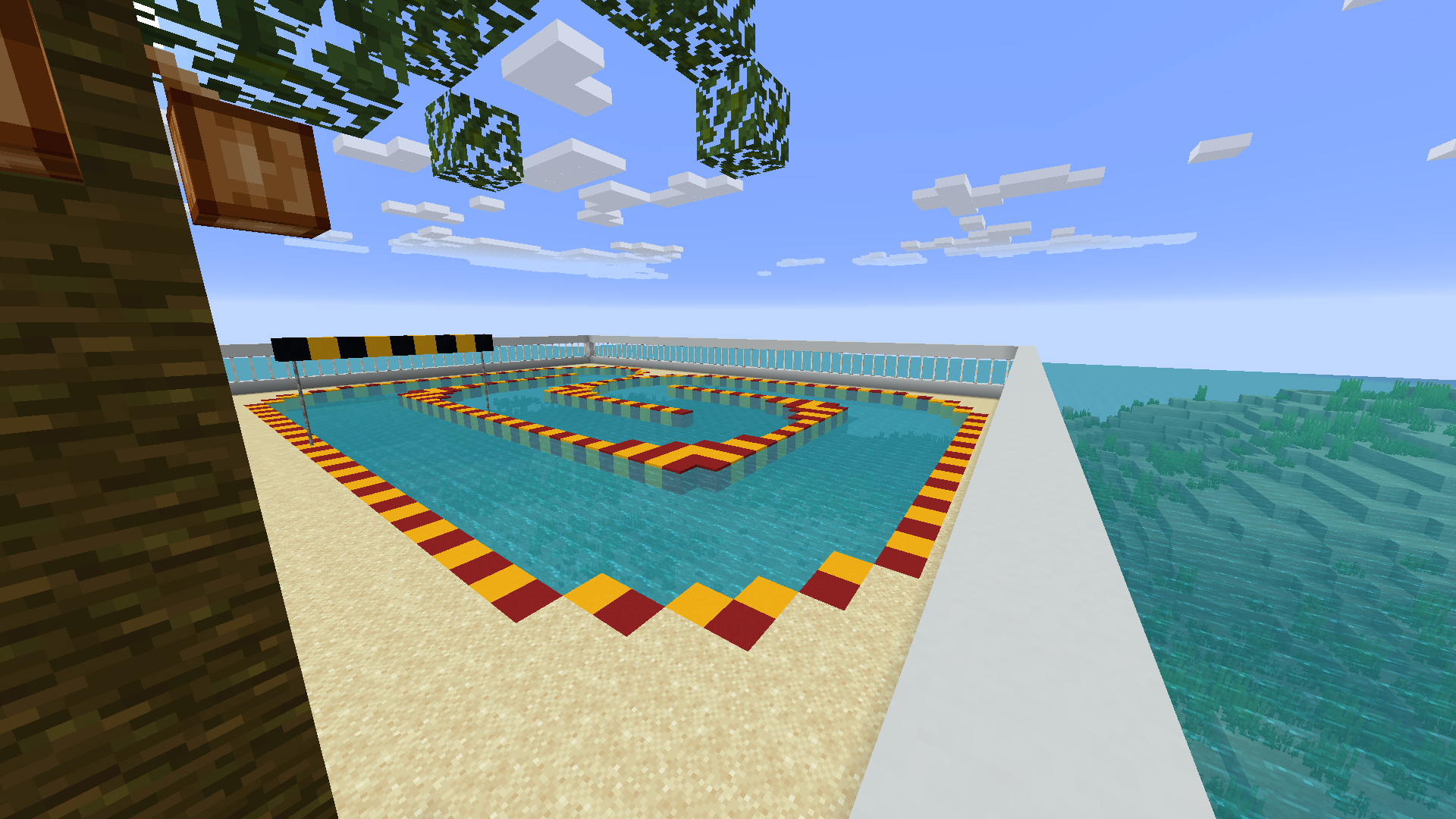 Las carreras se disputarán en el nuevo circuito acuático de Masía Alair, situado en las proximidades del spawn. Para llegar debéis bajar las escaleras del barco, girar a la izquierda y recorrer el túnel subacuático que hemos creado.