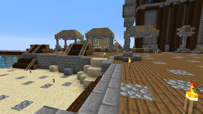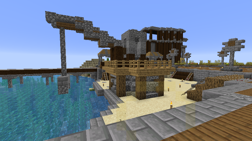 Y después del castillo que es la zona central y el otro edificio que rodea la entrada, hice un puerto.