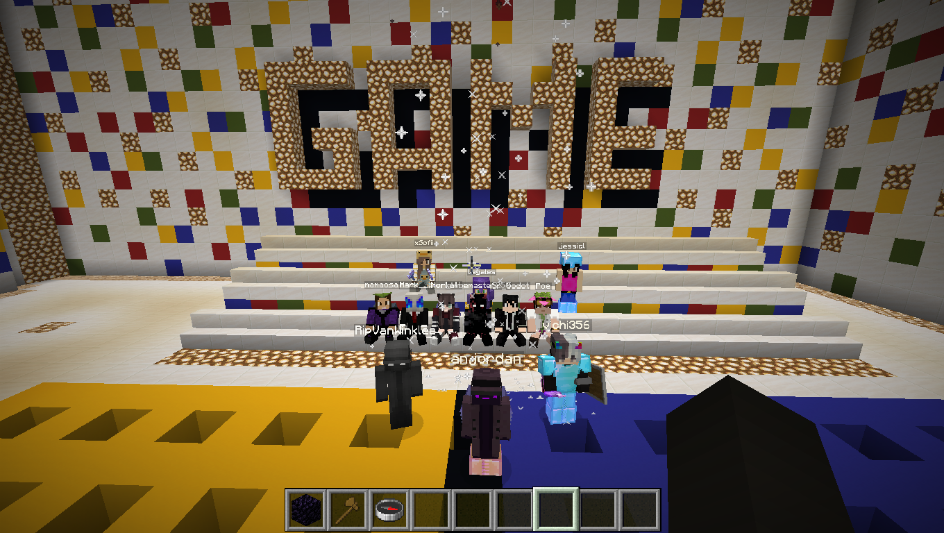 Cuando se te de acceso colócate en el hueco del centro del tablero y comete un chorusfruit, tendrás 5 intentos para teletransportarte a algún hueco del tablero. Si en tus 5 intentos no lo consigues serás descalificado, y si lo consigues iras pasando por las siguientes rondas hasta que no queden mas jugadores y ganes la partida.