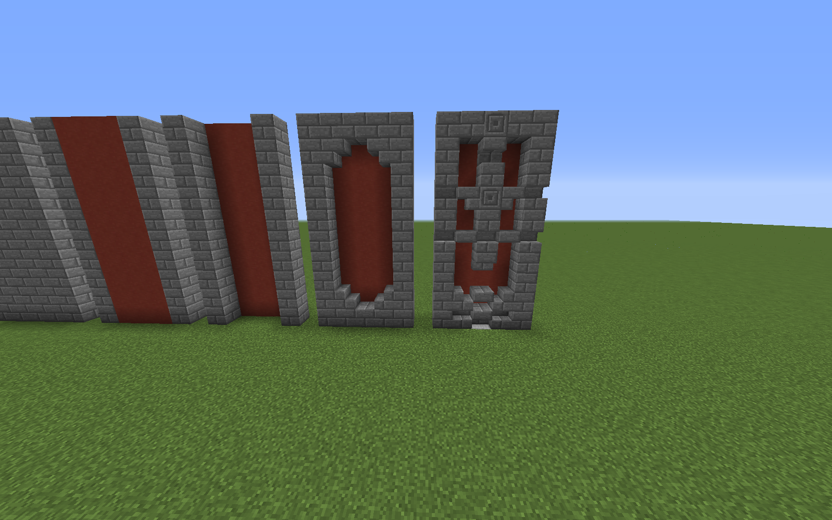 Otra excelente forma de hacerlo es generar volúmenes o relieves, otra forma de decirlo sería añadir capas a un muro, sin embargo no de altura, al contrario, de ancho, muchas de las estructuras que mejor pueden llegar a verse tienden a ir de entre 2 y hasta 10 bloques de ancho (he llegado a ver incluso de 15, sin embargo estas eran increíblemente complejas), por mi parte los muros tienden a tener un ancho de 2 o 5 bloques, dado que es más simple, además de que se puede llegar a un resultado muy agradable a la vista.