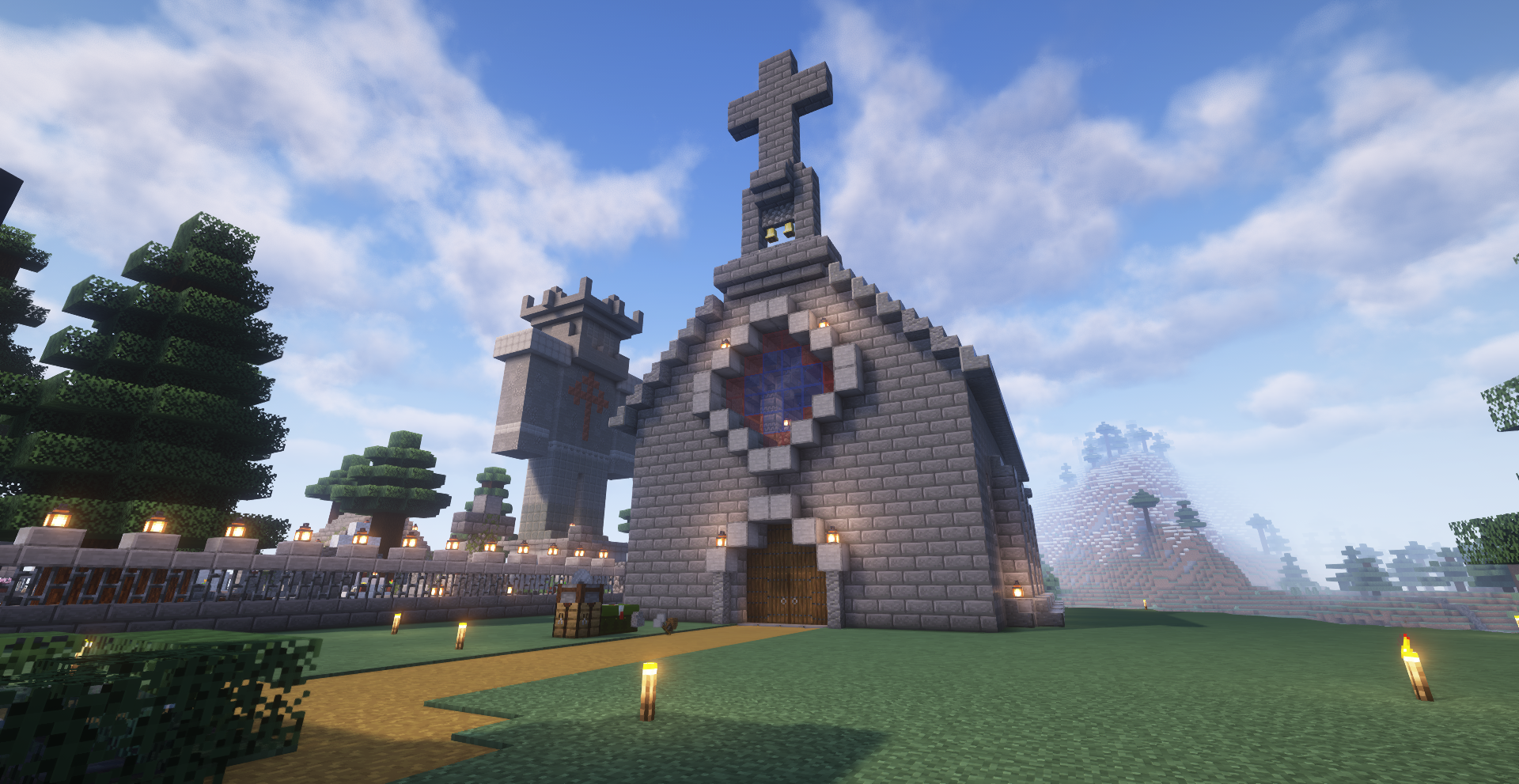 Vista externa de la Ermita junto a la Cruz de los caballeros caídos por el Reino de Invernalia en su lucha contra el Lich