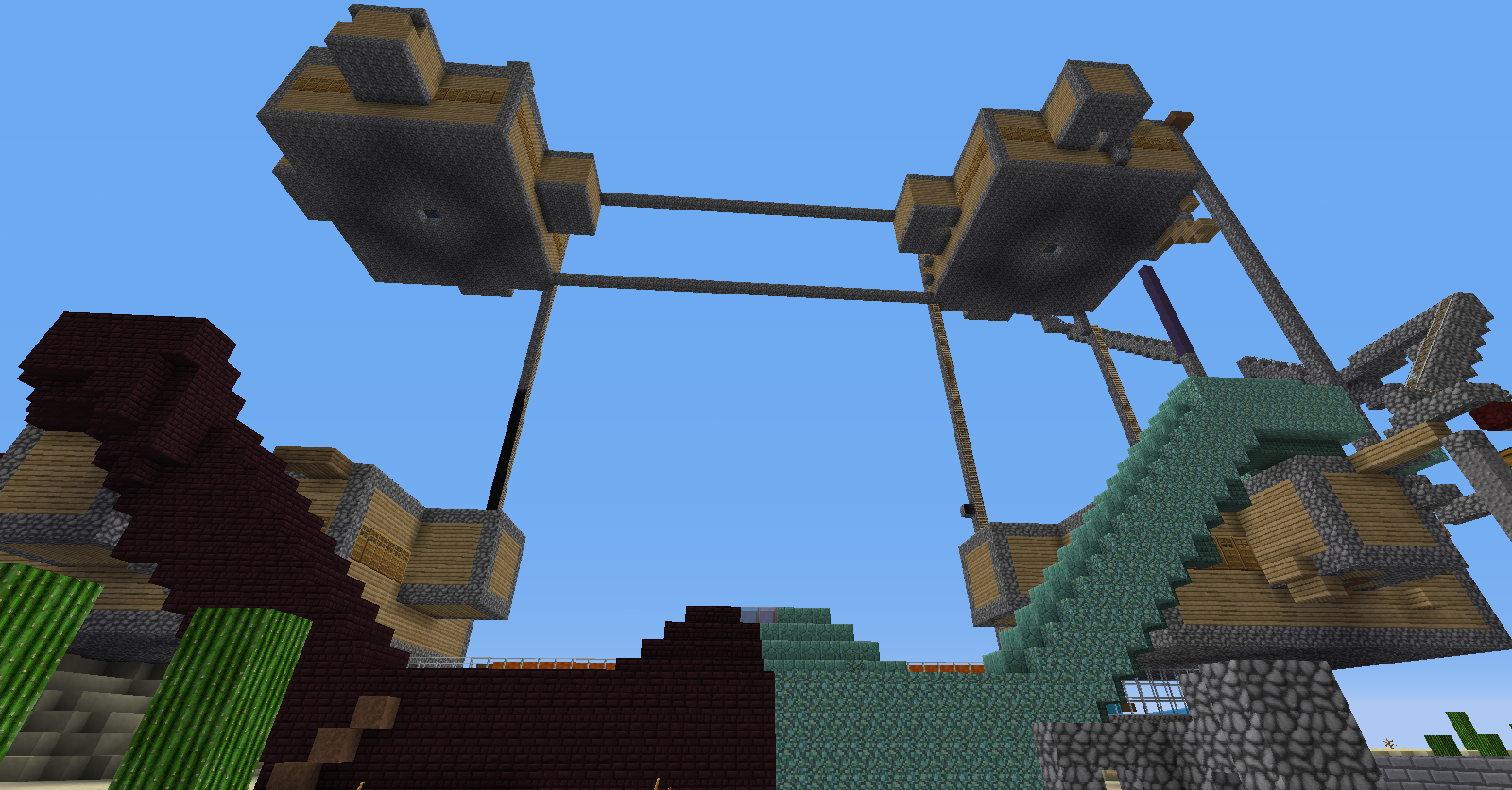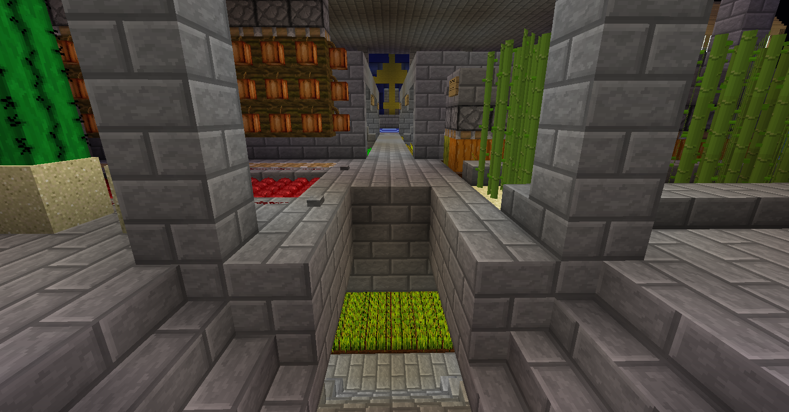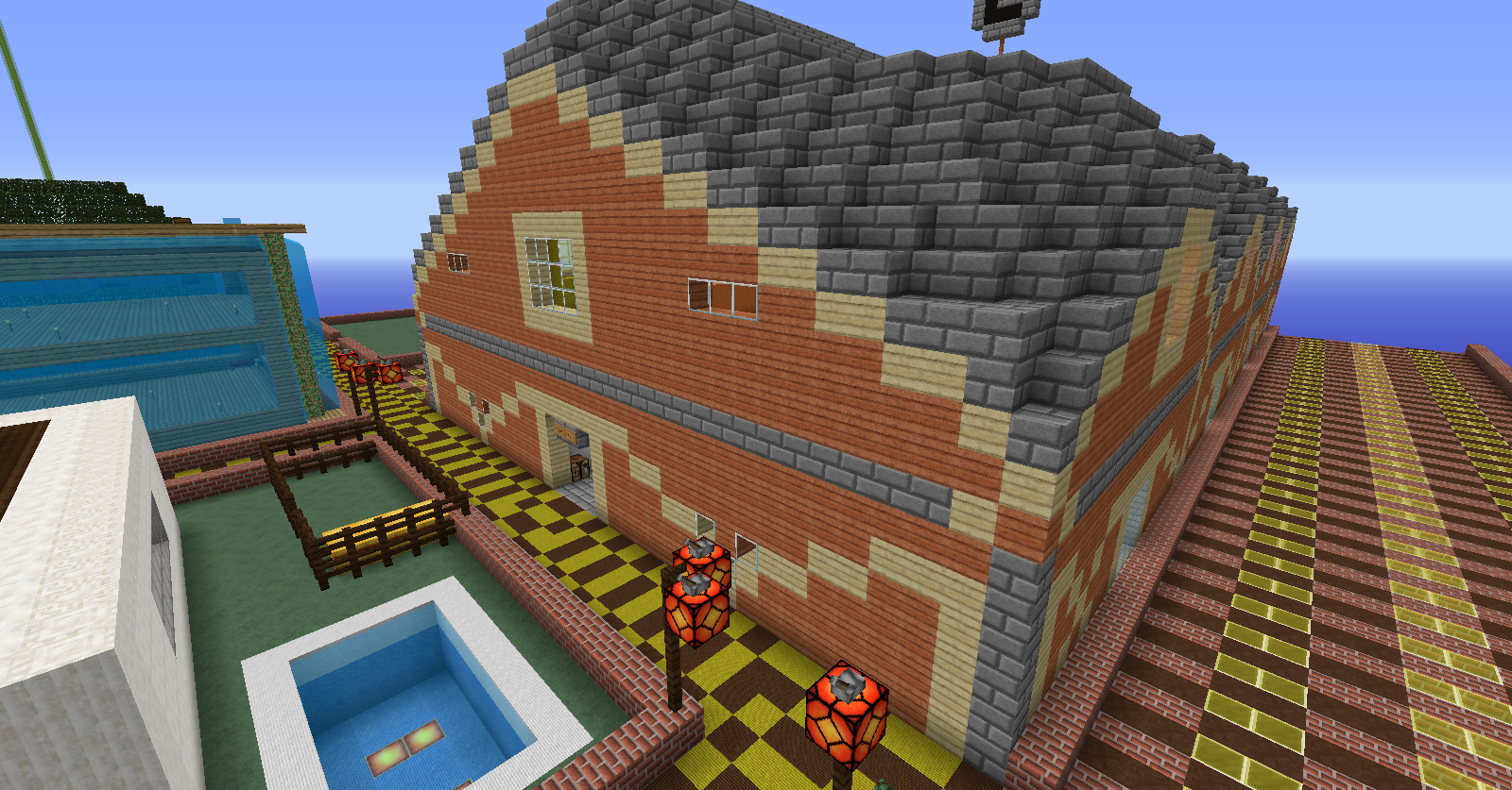 3º El granero pasará de 3 plantas a 2 plantas para así evitar la acumulación de mobs y sus avisos o sanciones derivadas, para ello pollos y conejos serán colocados en la planta baja y las vacas en el espacio equivalente de los dos anteriores en la 1º planta; las ovejas quedaran de la misma forma pero contaran con mucho mas espacio.