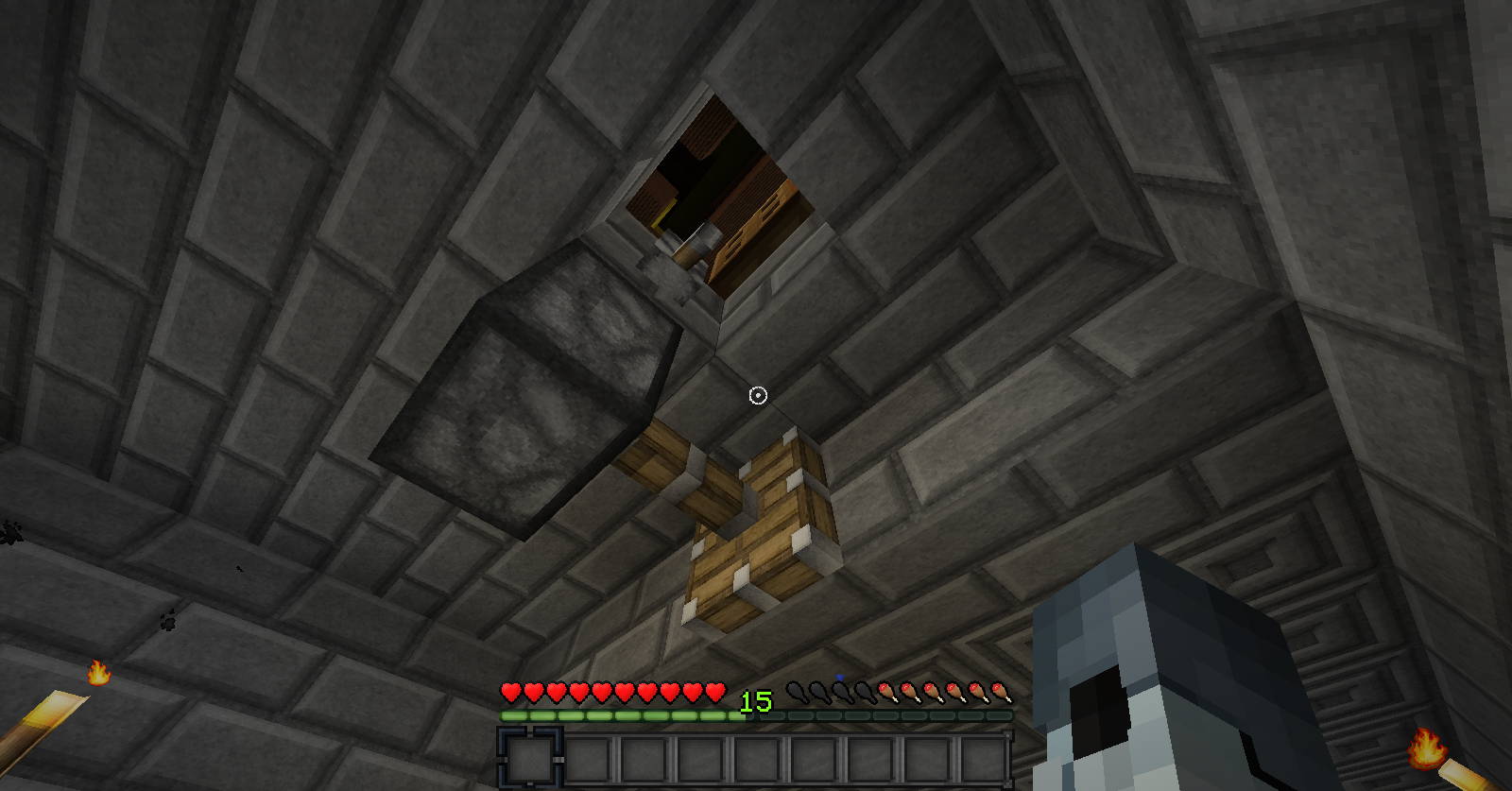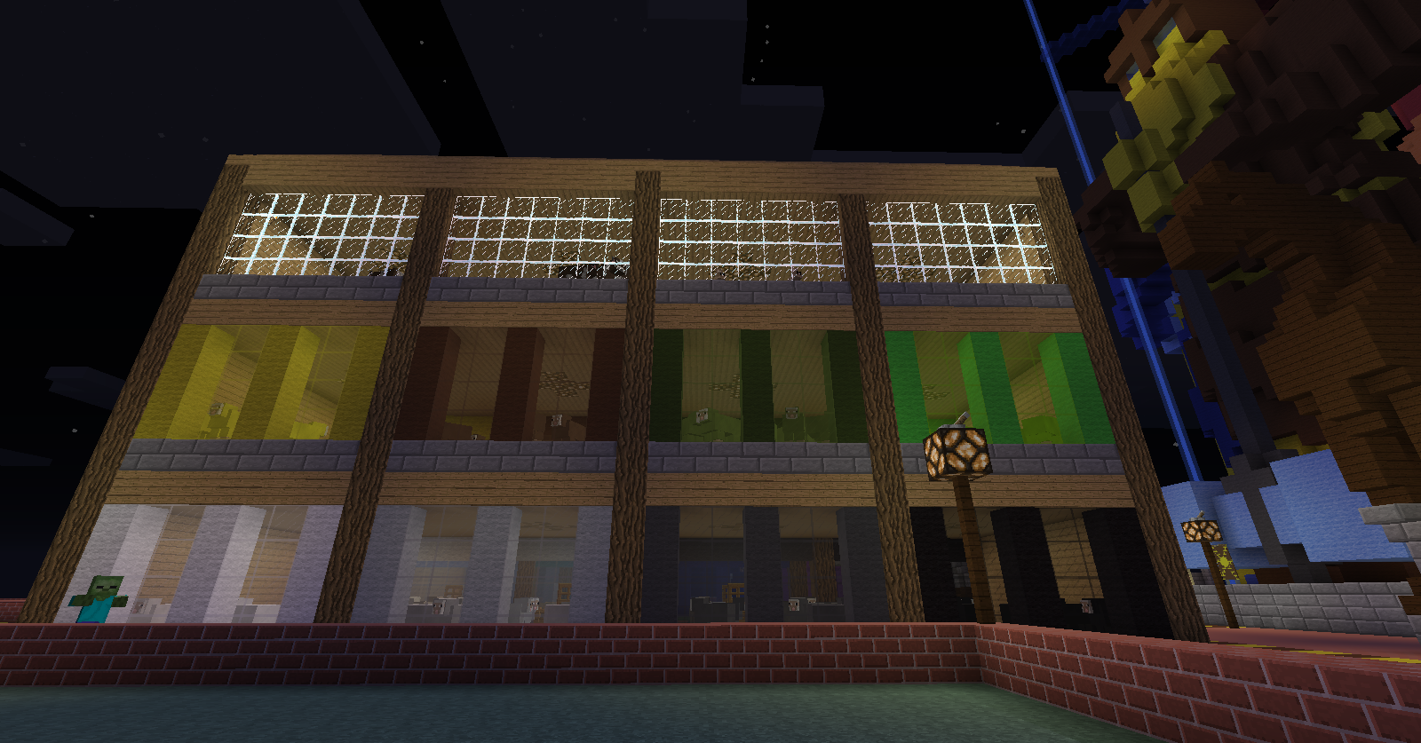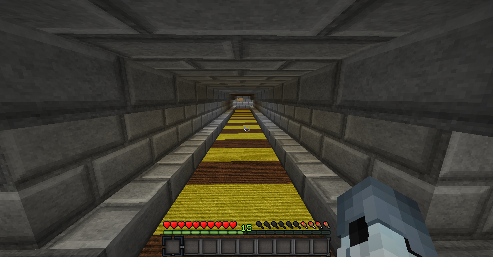 3º El granero pasará de 3 plantas a 2 plantas para así evitar la acumulación de mobs y sus avisos o sanciones derivadas, para ello pollos y conejos serán colocados en la planta baja y las vacas en el espacio equivalente de los dos anteriores en la 1º planta; las ovejas quedaran de la misma forma pero contaran con mucho mas espacio.