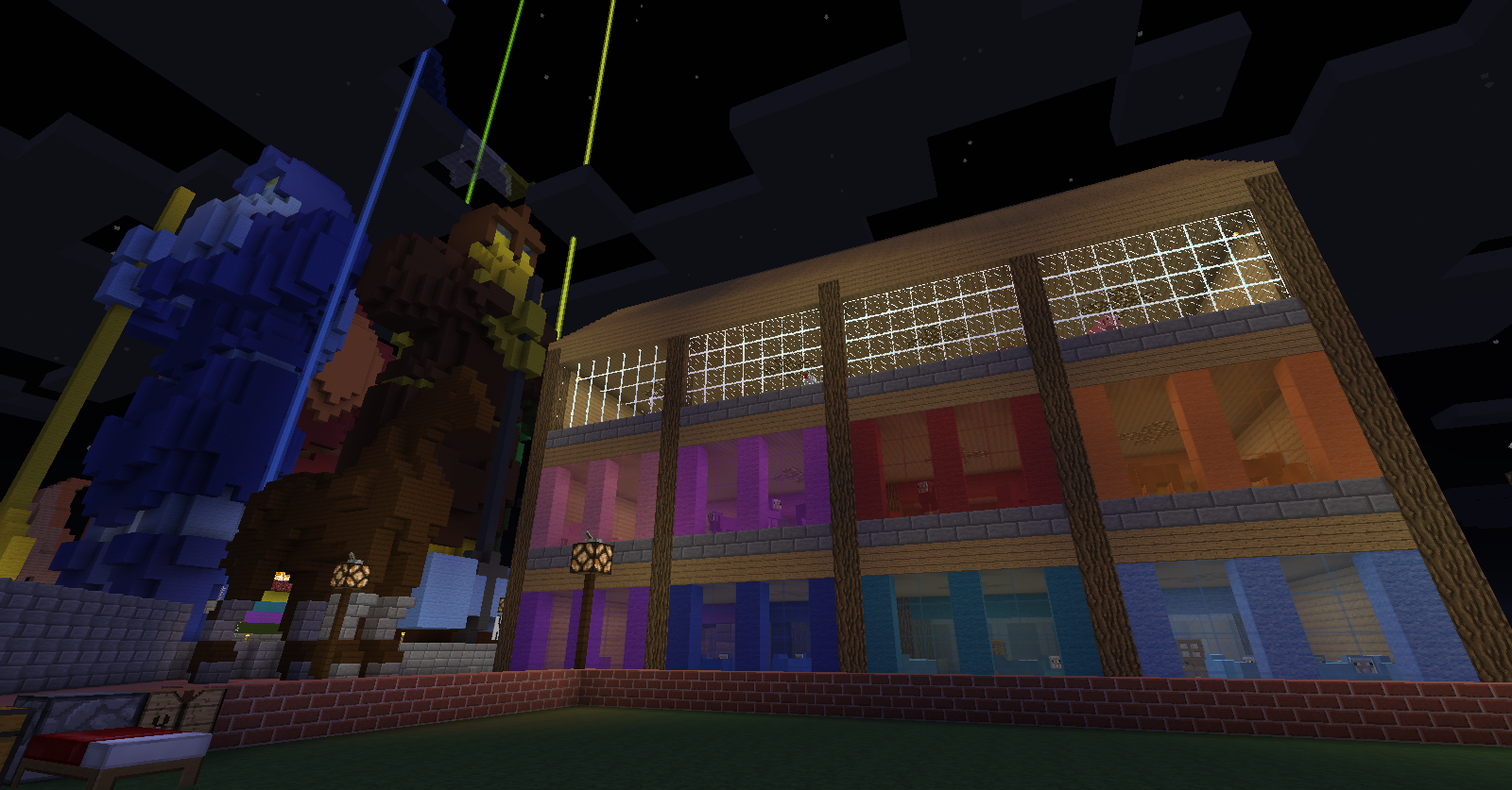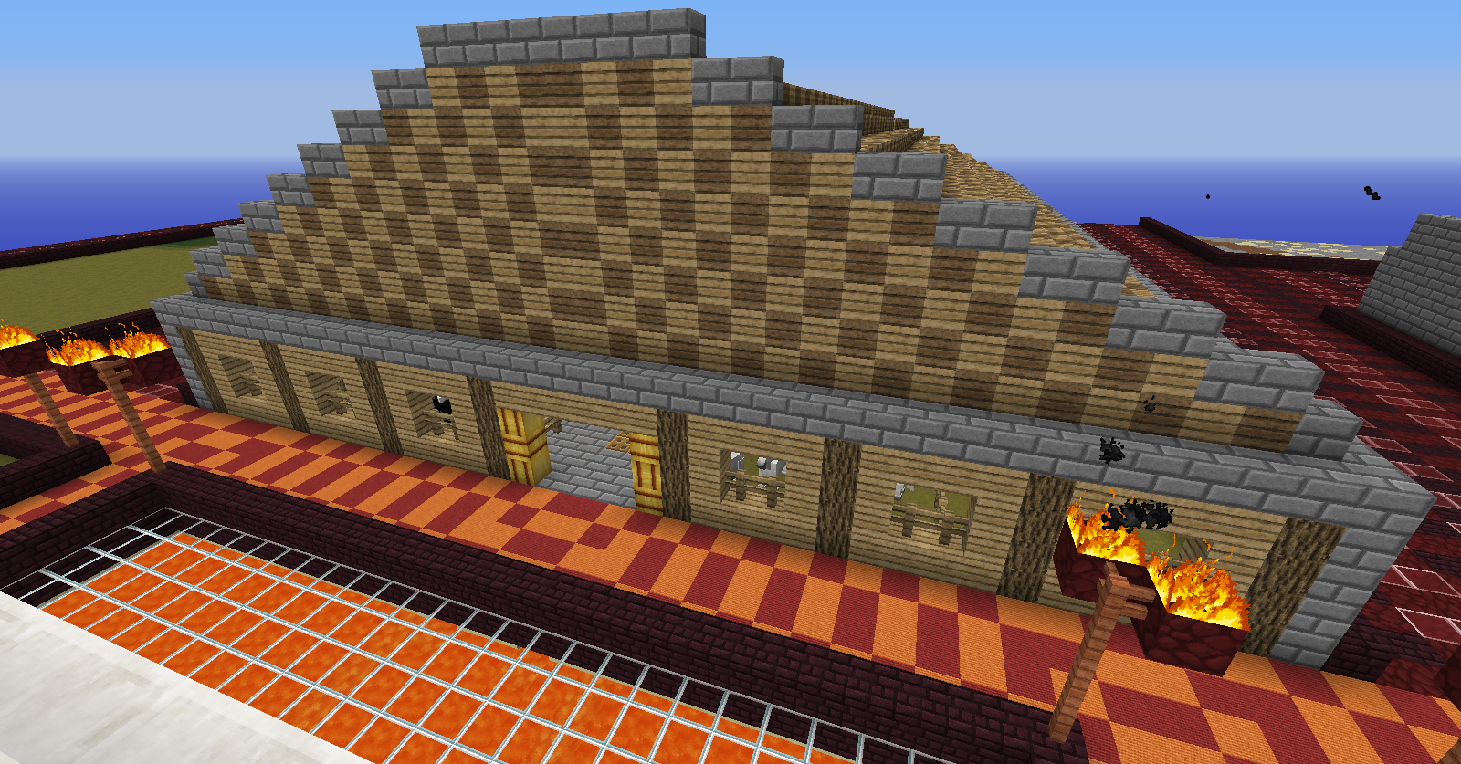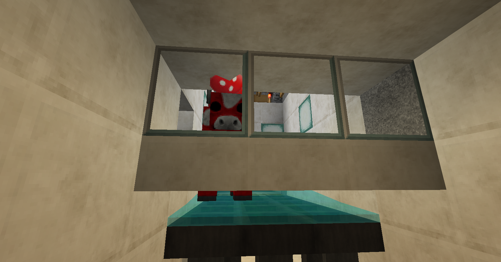 3º El granero pasará de 3 plantas a 2 plantas para así evitar la acumulación de mobs y sus avisos o sanciones derivadas, para ello pollos y conejos serán colocados en la planta baja y las vacas en el espacio equivalente de los dos anteriores en la 1º planta; las ovejas quedaran de la misma forma pero contaran con mucho mas espacio.