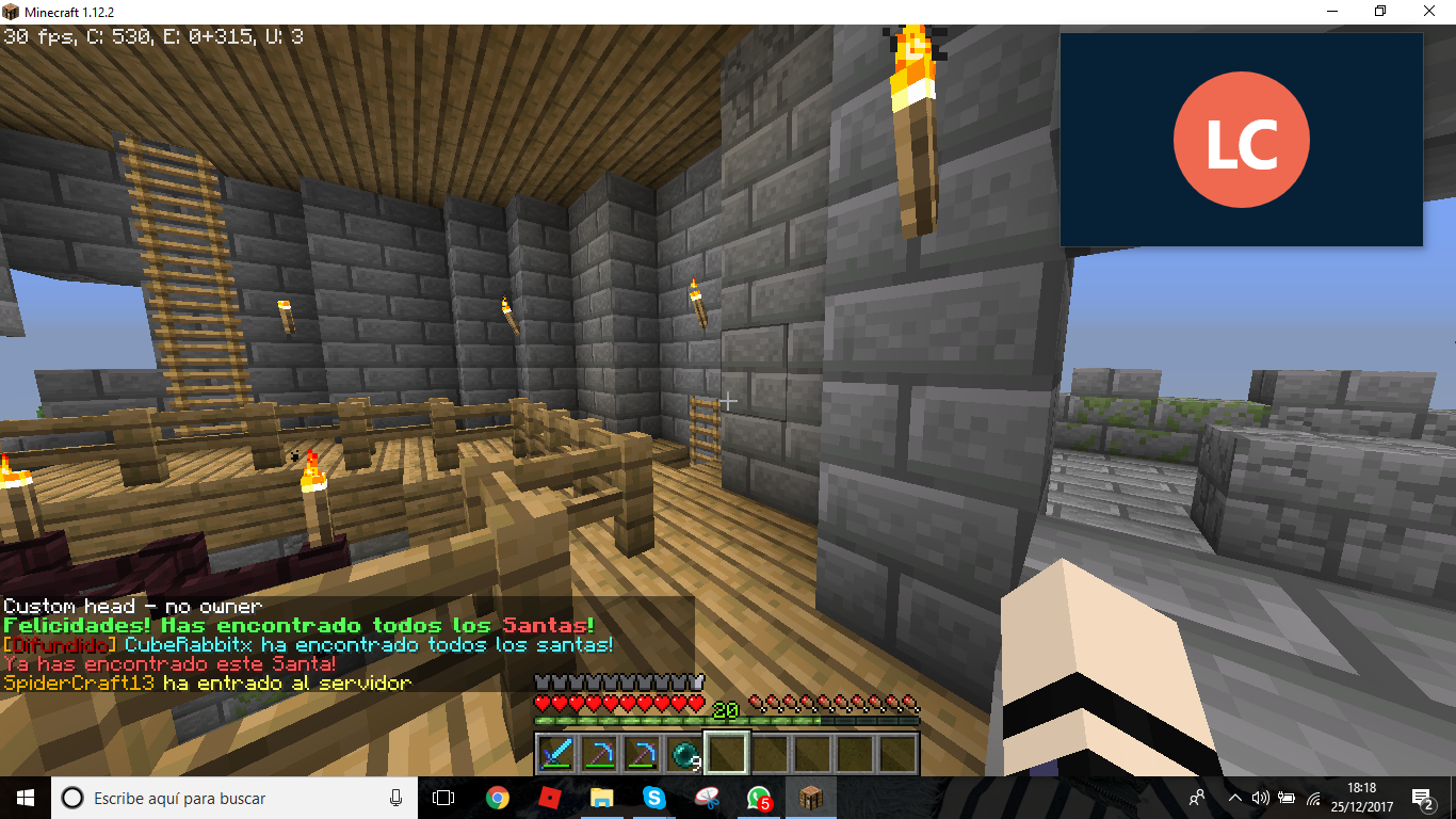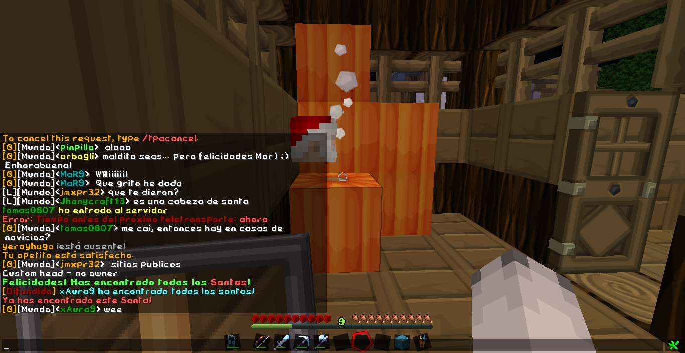 Durante el día de mañana pondremos en marcha este evento, trata de encontrar 25 cabezas de Santa Claus que están escondidas por el Spawn del servidor. Cuando encontréis una, solo tenéis que hacer click con el botón derecho del ratón en la cabeza, aparecerá un Santa Claus y automáticamente se sumará a vuestra lista de cabezas encontradas. Os aparecerá un mensaje diciendo: Has encontrado la cabeza de Santa (1/25) y así sucesivamente hasta que encontréis las 25 cabezas.