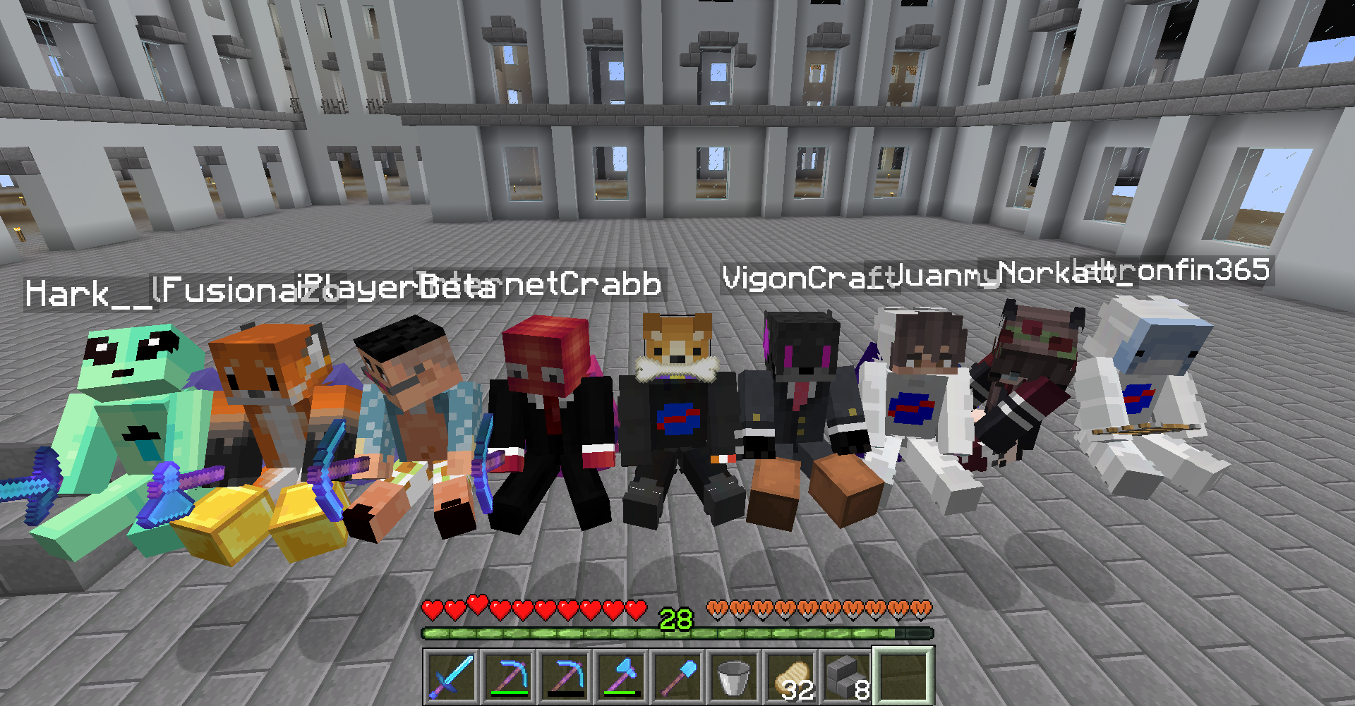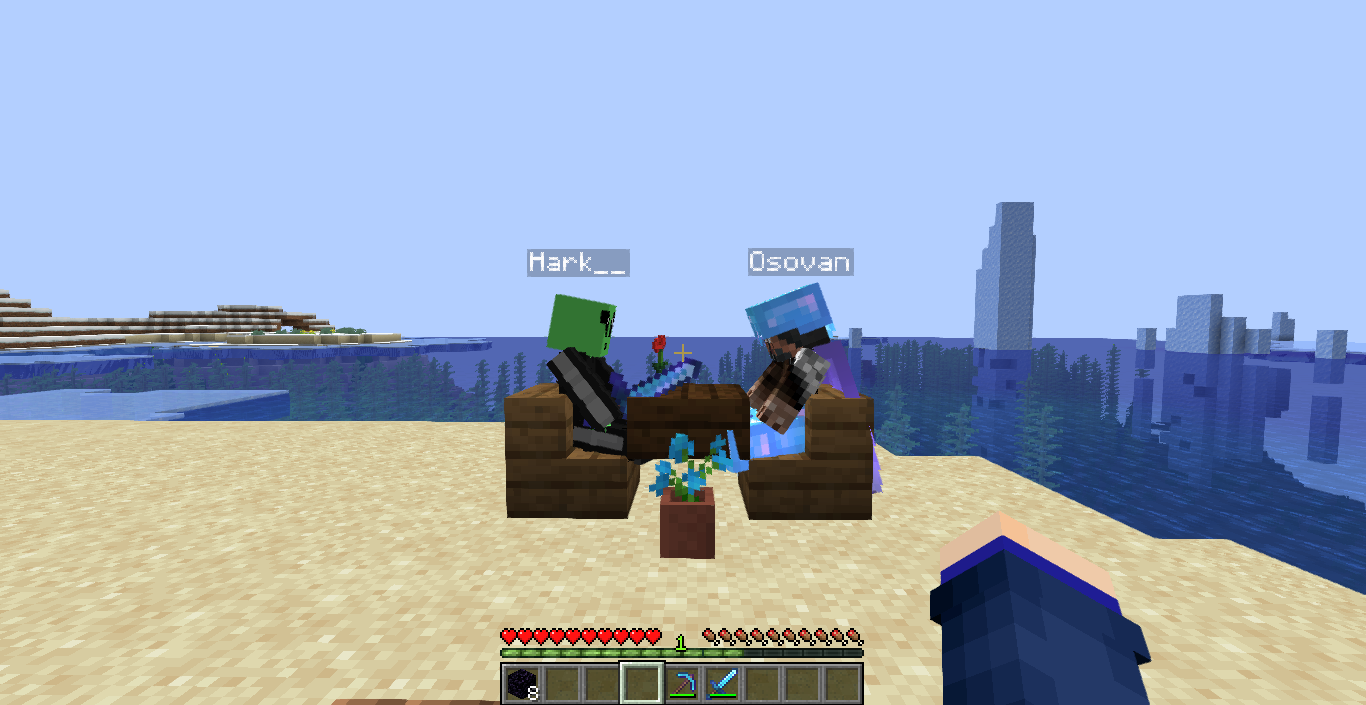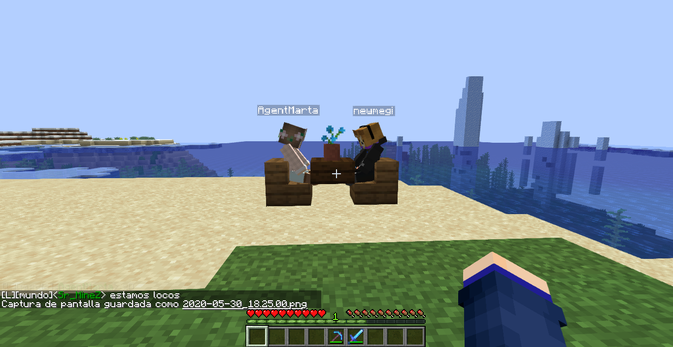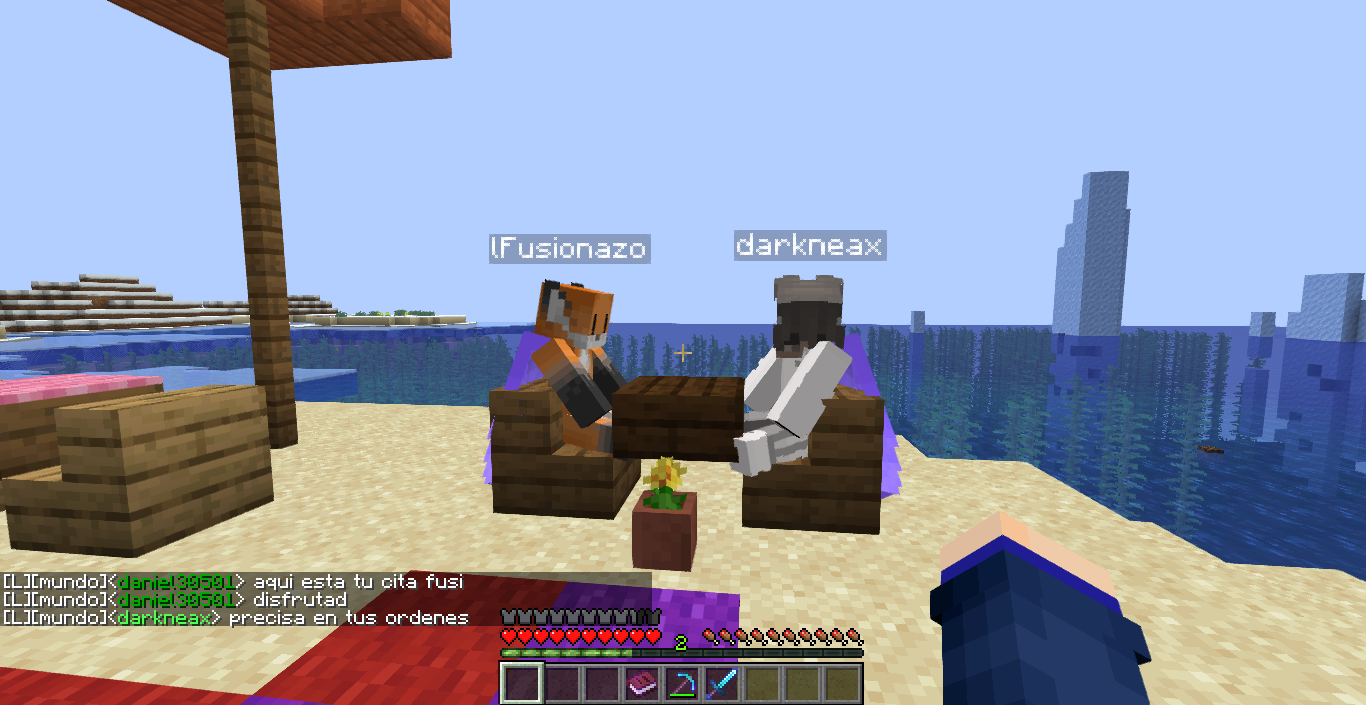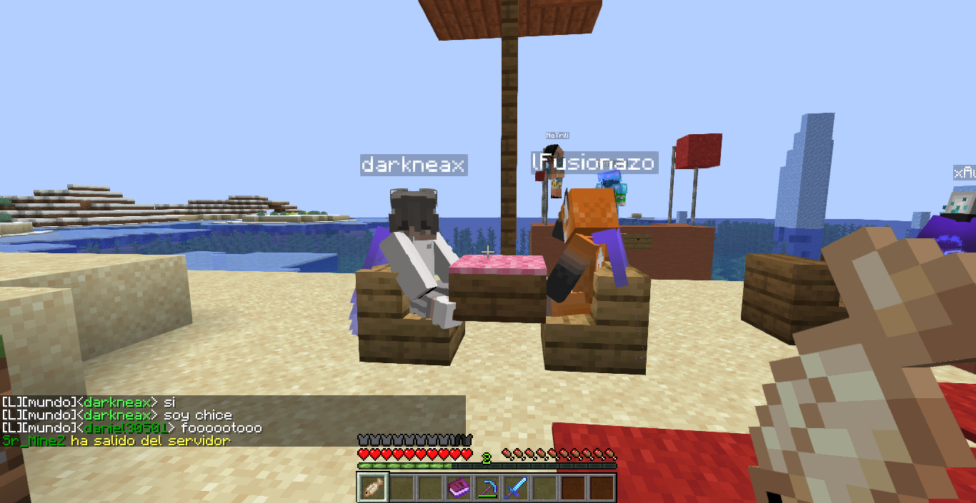 Tomando el sol con Mar y Lebron mientras los demas construyen en el warp spawn