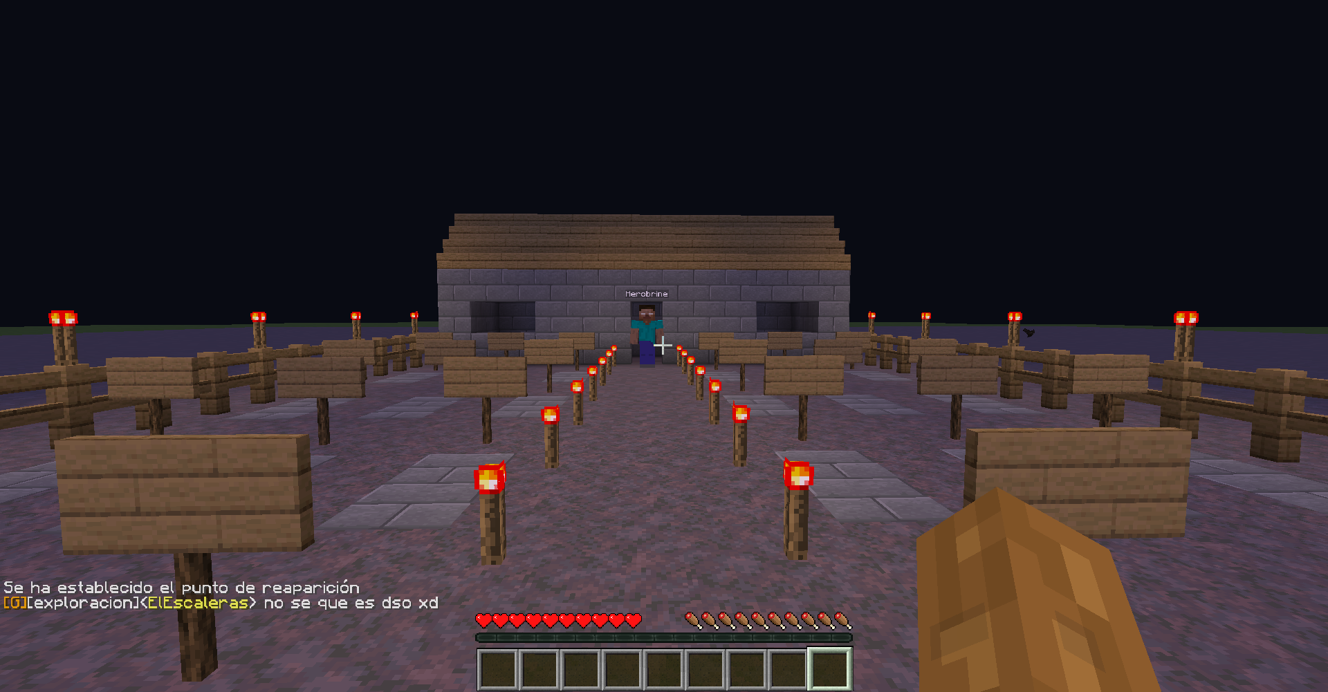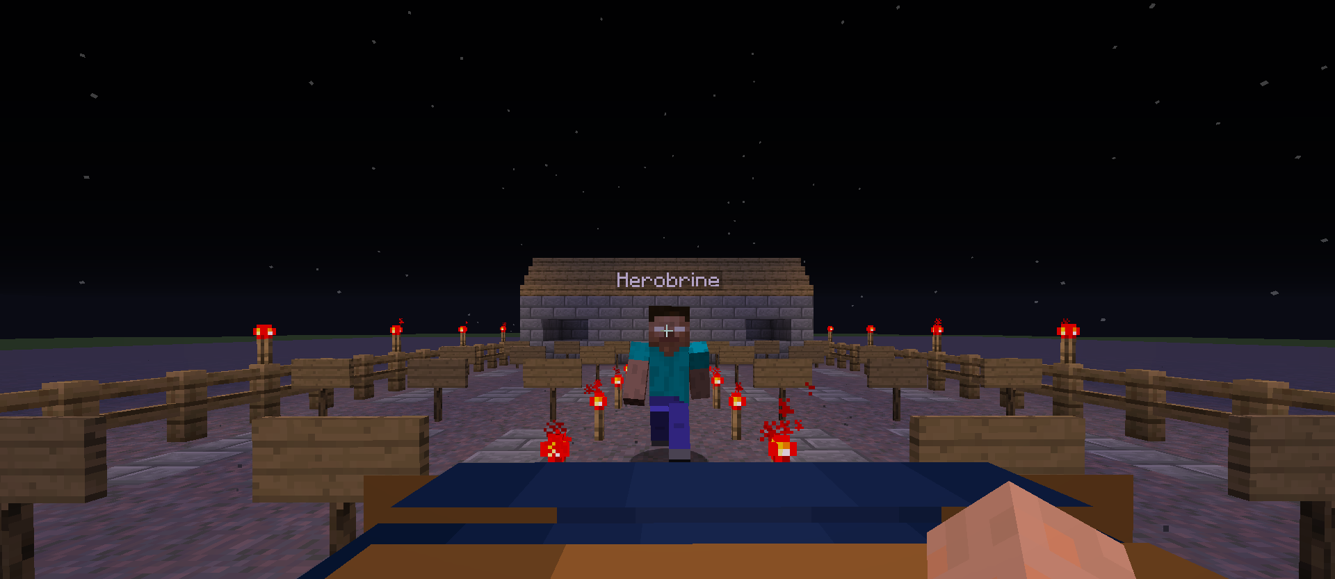 Me encontraba en una granja AFK y decidí irme del server y me hice TP a mi casa justo antes de abrir un cofre me hiso TP a un lugar extraño, no tenia nada y lo primero que vi fue lo que creí que nunca iba a ver (HEROBRINE) le tome una foto lo más antes posible que tiene hora, día y año en el que estaba justo cuando vi a HEROBRINE. Luego se me acerco poco a poco, yo no podía hacer nada y cuando estaba al frente mío se me TP donde estaba y con todas mis cosas.