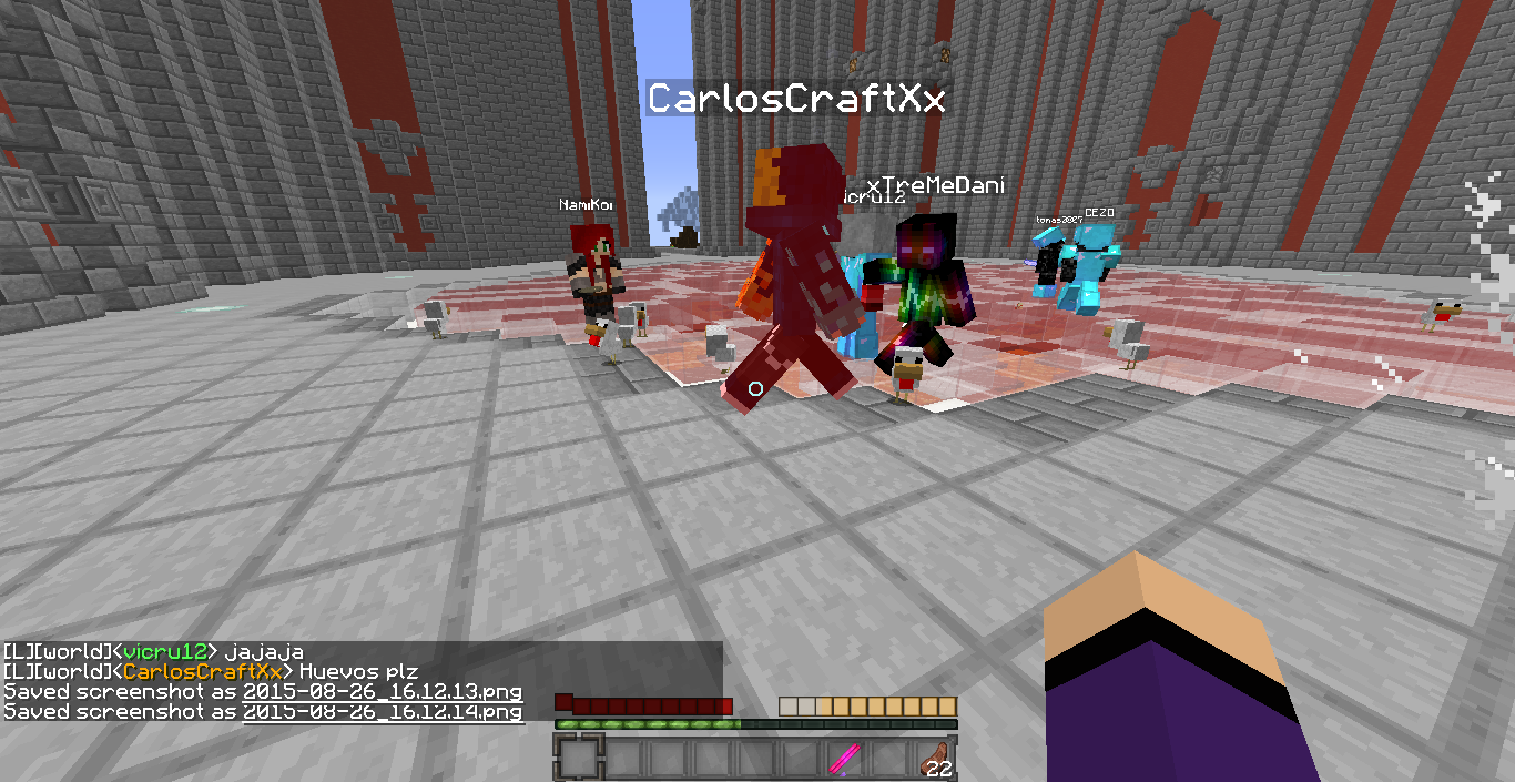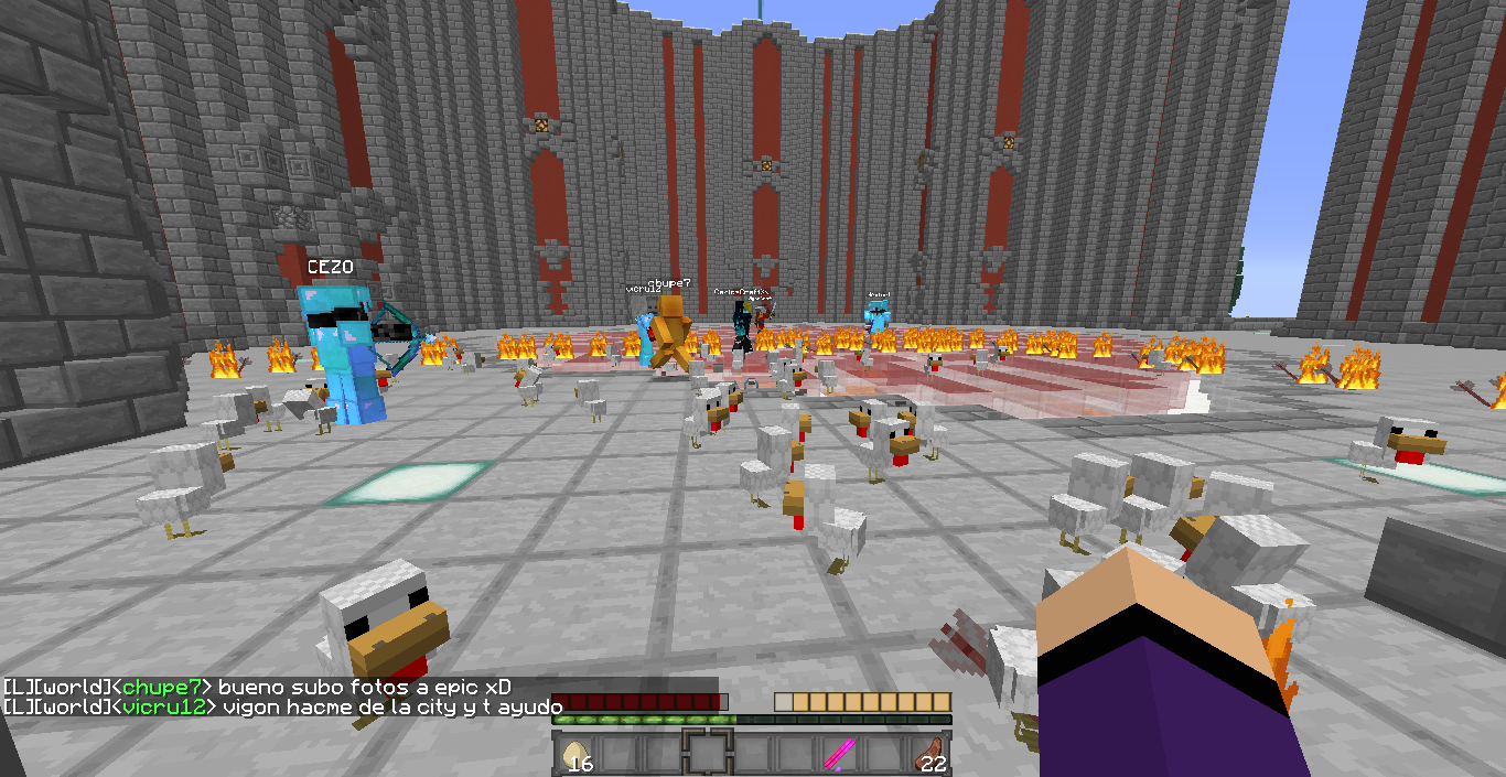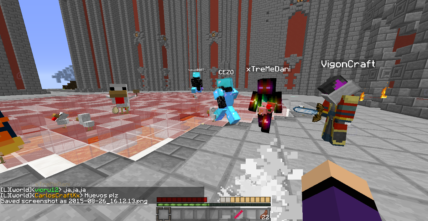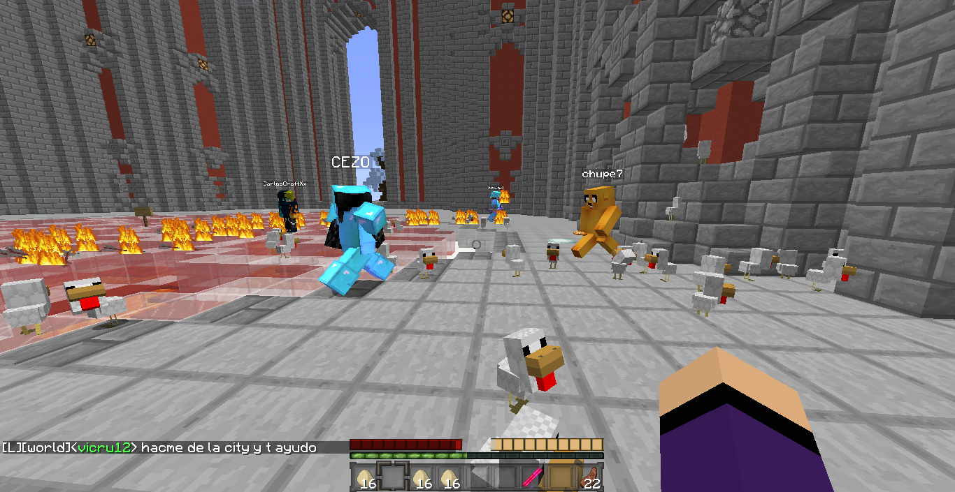En mundo-minecraft hemos hecho la huevatina que estuvo muy entretenida, gracias a vigon por prestar su ciudad y a tomasito por ayudar a matar los pollos...adjunto los recuerditos en screen