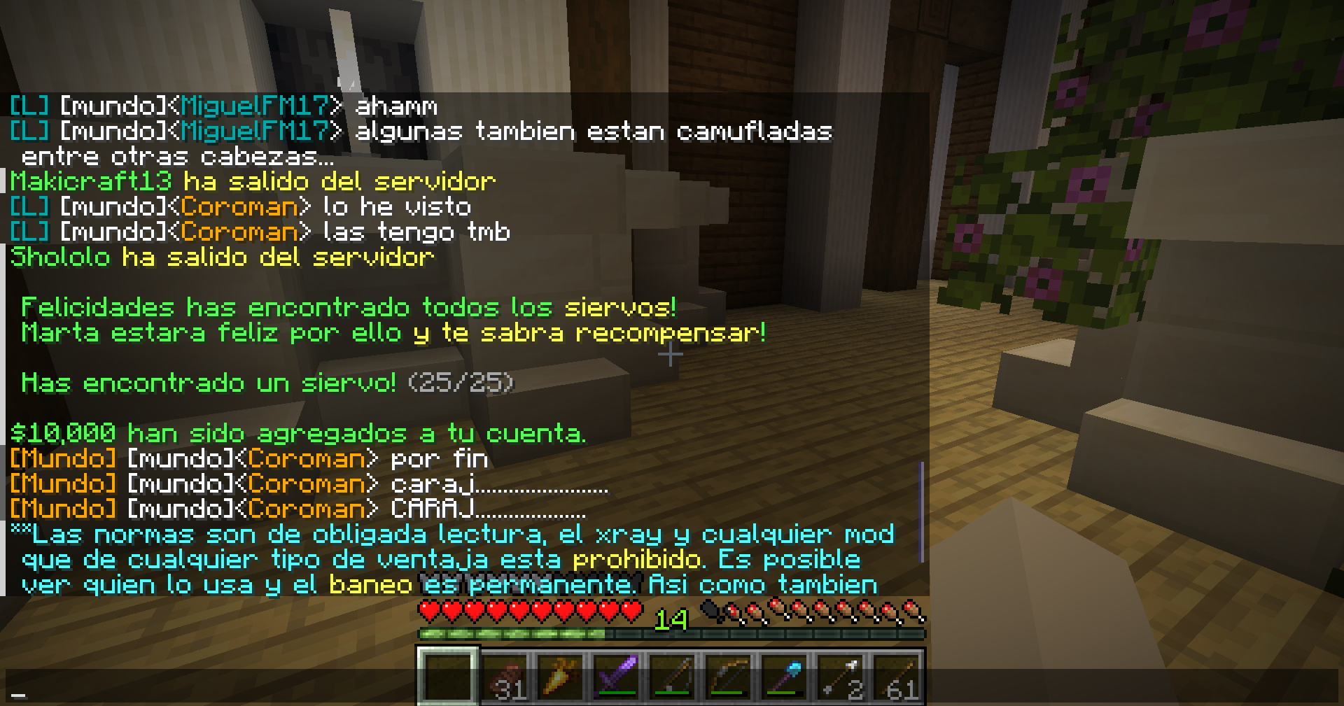 Para empezar deberas poner /warp teatro y una vez que encuentres a esos traidores, pon una imagen en este foro y Marta junto con sus siervos aun leales, te dará tu merecida recompensa. No pierdas tiempo, se rápido y no olvides una cosa... La lealtad es lo mas importante para Marta, da igual lo que escuches, ignora las voces, no creas a esos traidores.