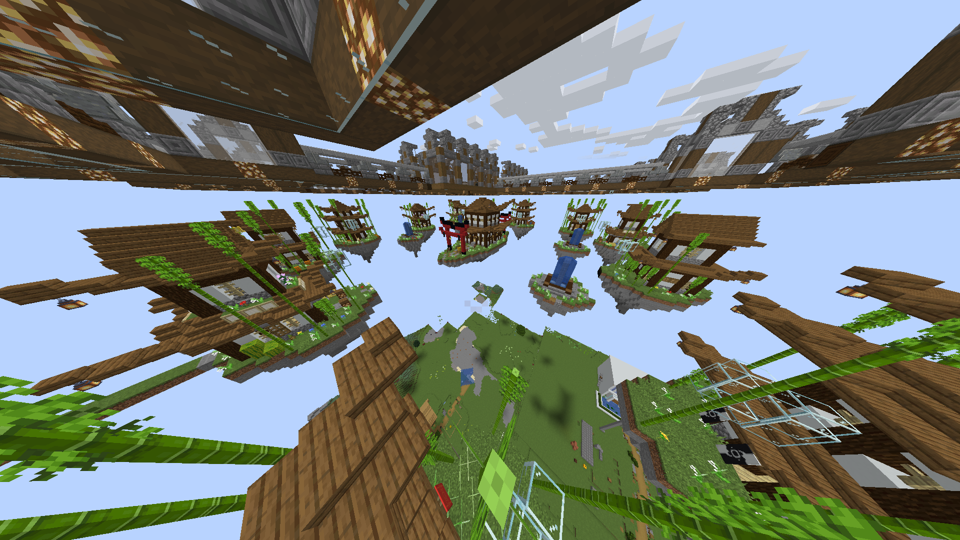 Este Skywars consta de 12 islas que forman un cuadrado. En su interior hay 4 islas secundarias donde los jugadores pueden obtener recursos, herramientas, bloques... En el centro, se puede observar una isla mucho más grande que las demás que contiene cofres y otras sorpresas para los jugadores. Para los espectadores hay unas gradas encima de las islas para poder observar sin perder ningún detalle de la batalla.