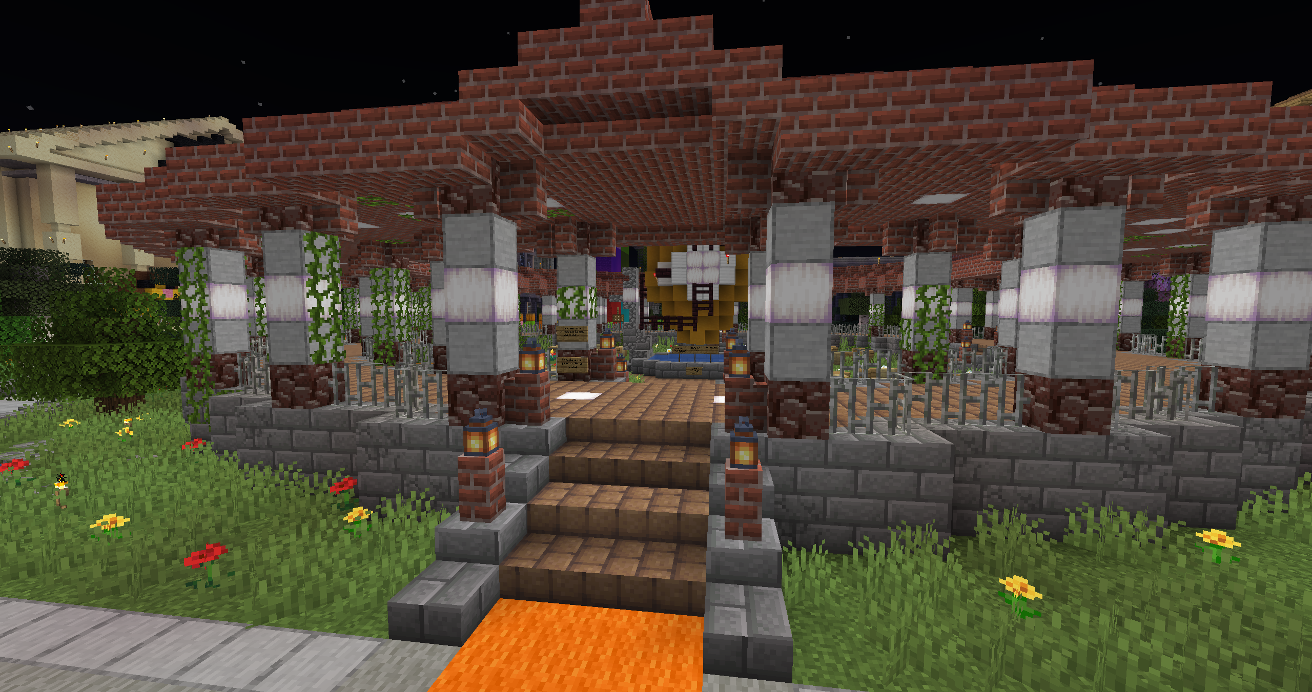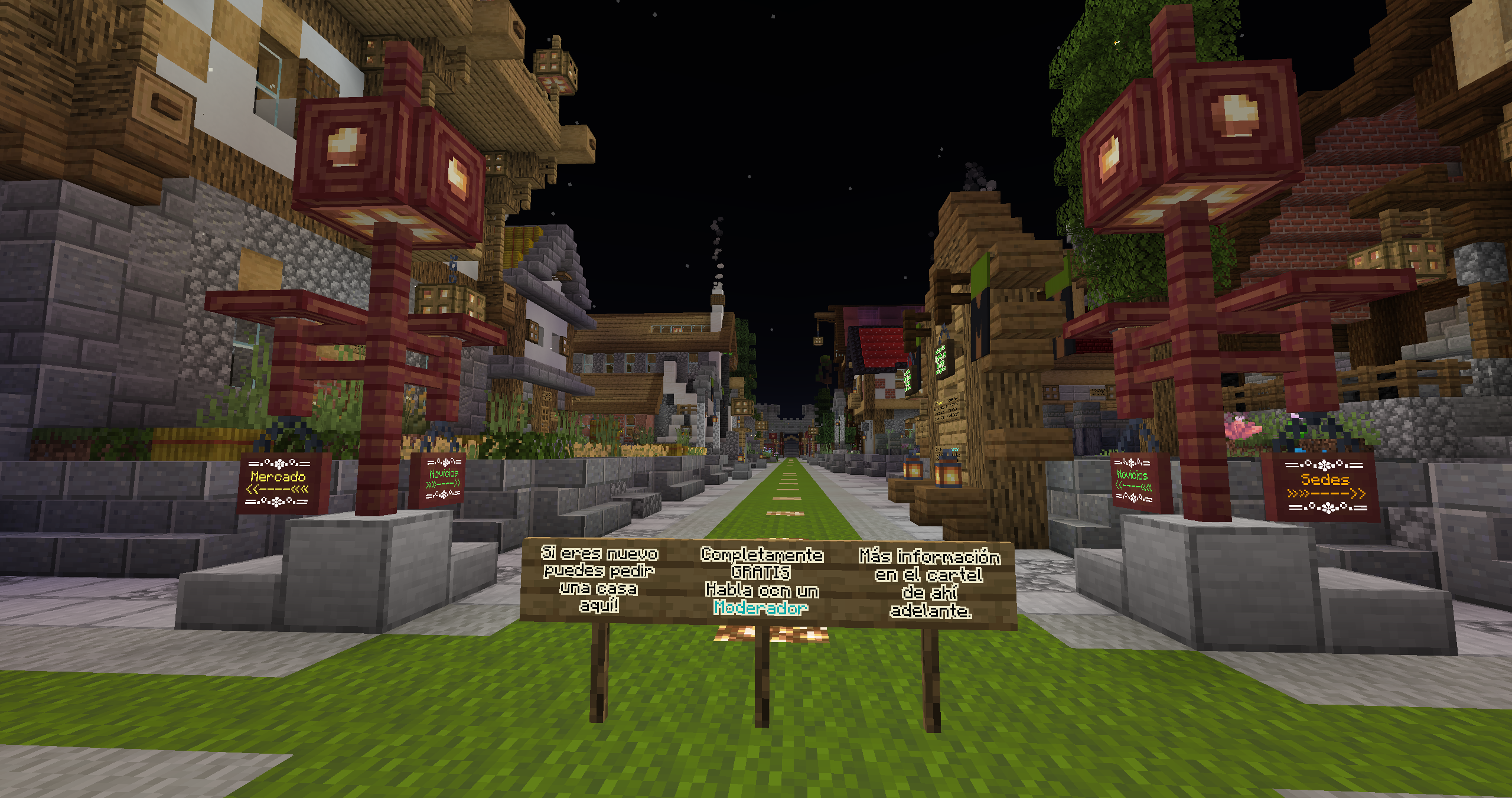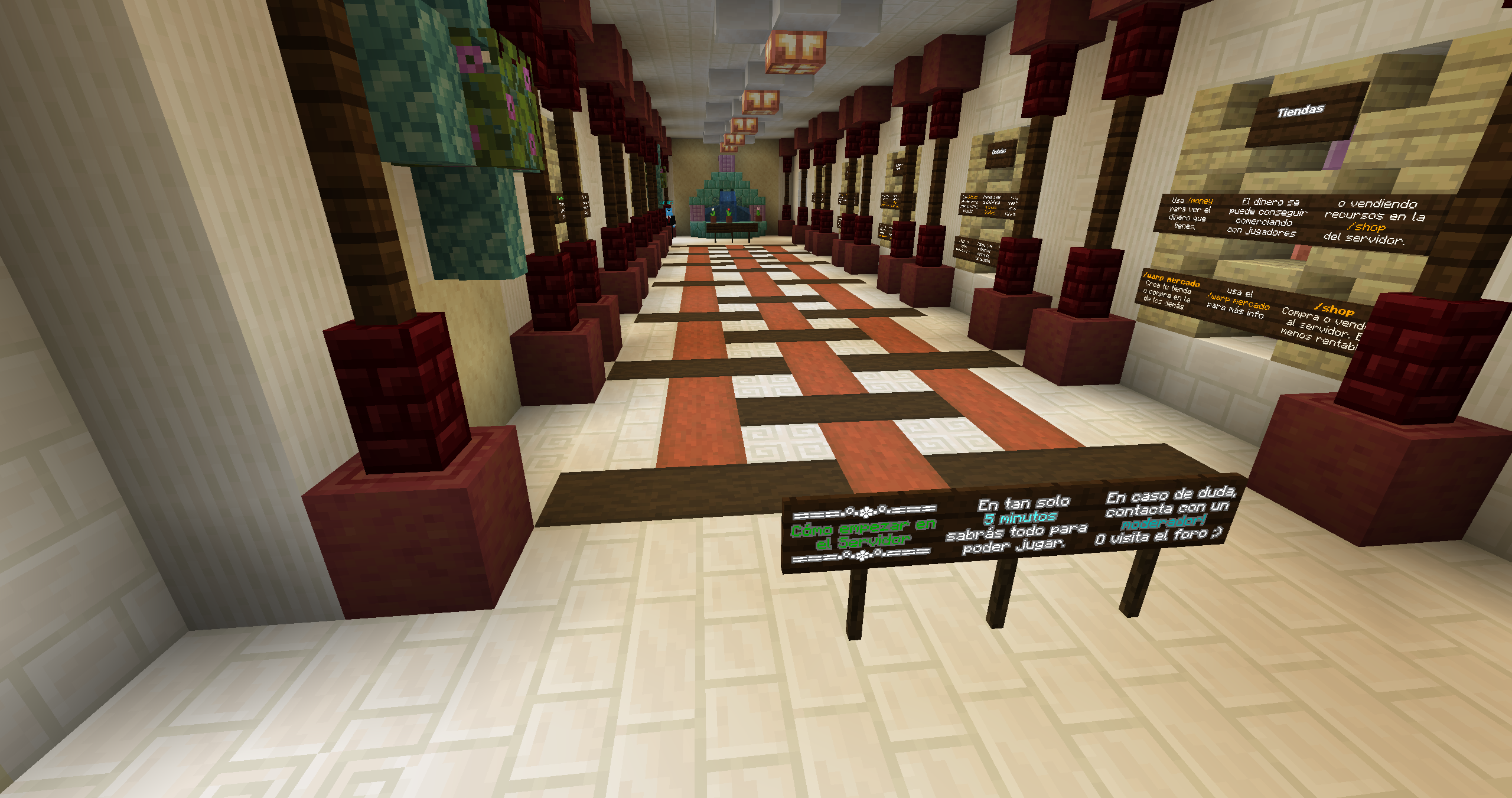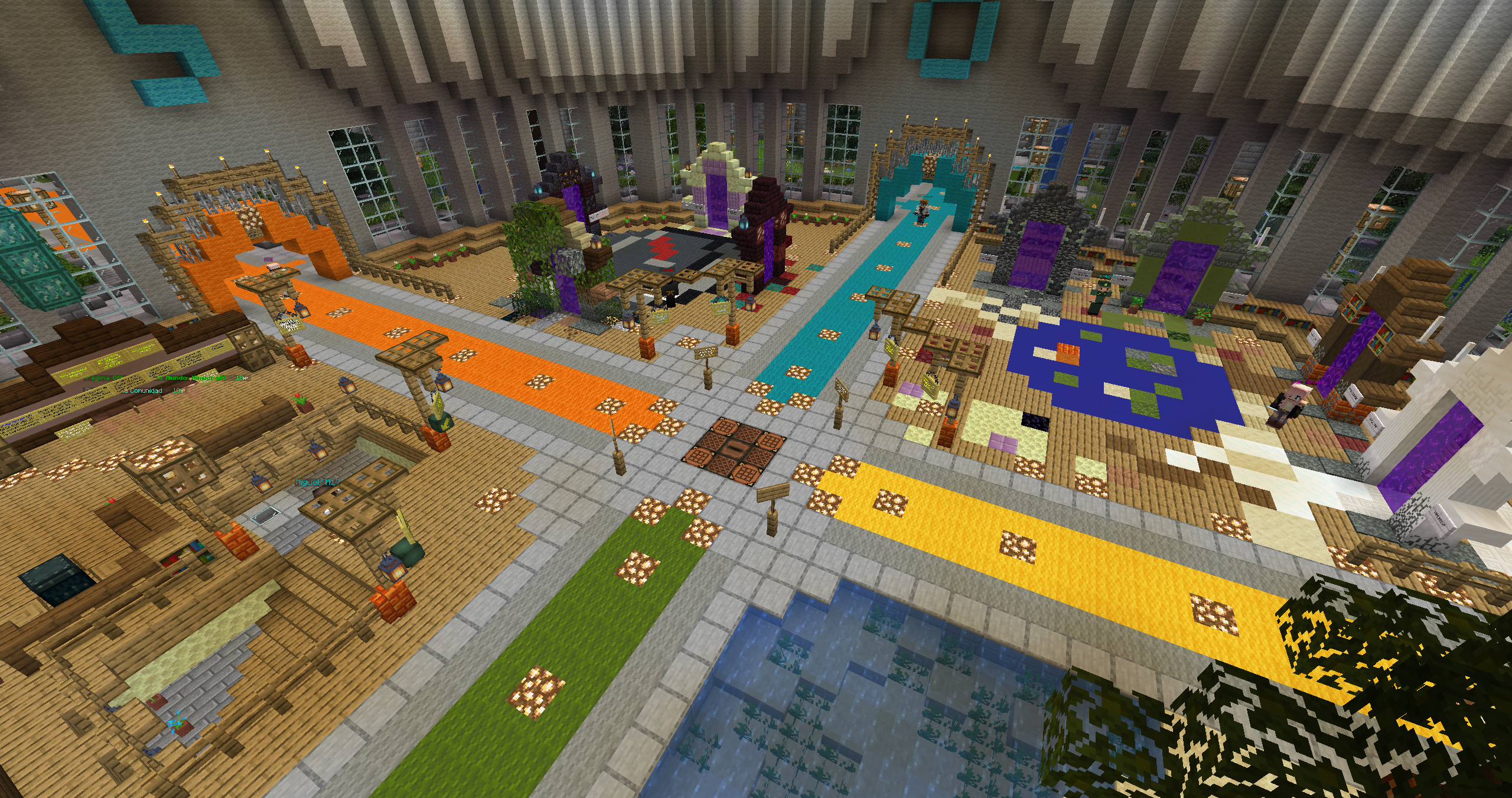 :diamante: Hemos redecorado todo el spawn, los portales han sido cambiados, jardines, las murallas se tocaron un poco, entre otras decoraciones, os iré dejando fotos para que os hagáis una idea clara. Se han eliminado los portales de mundo anarquía y survival y se ha añadido el portal al mundo minijuegos, donde actualmente vamos a empezar con el paintball. El plugin ha sido actualizado por la comunidad, ya que no tenia soporte para la 1.21.8. La idea de este mundo, es ir cambiando los minijuegos cada cierto tiempo, ya sea con skyblock o otros tipos de minijuegos.