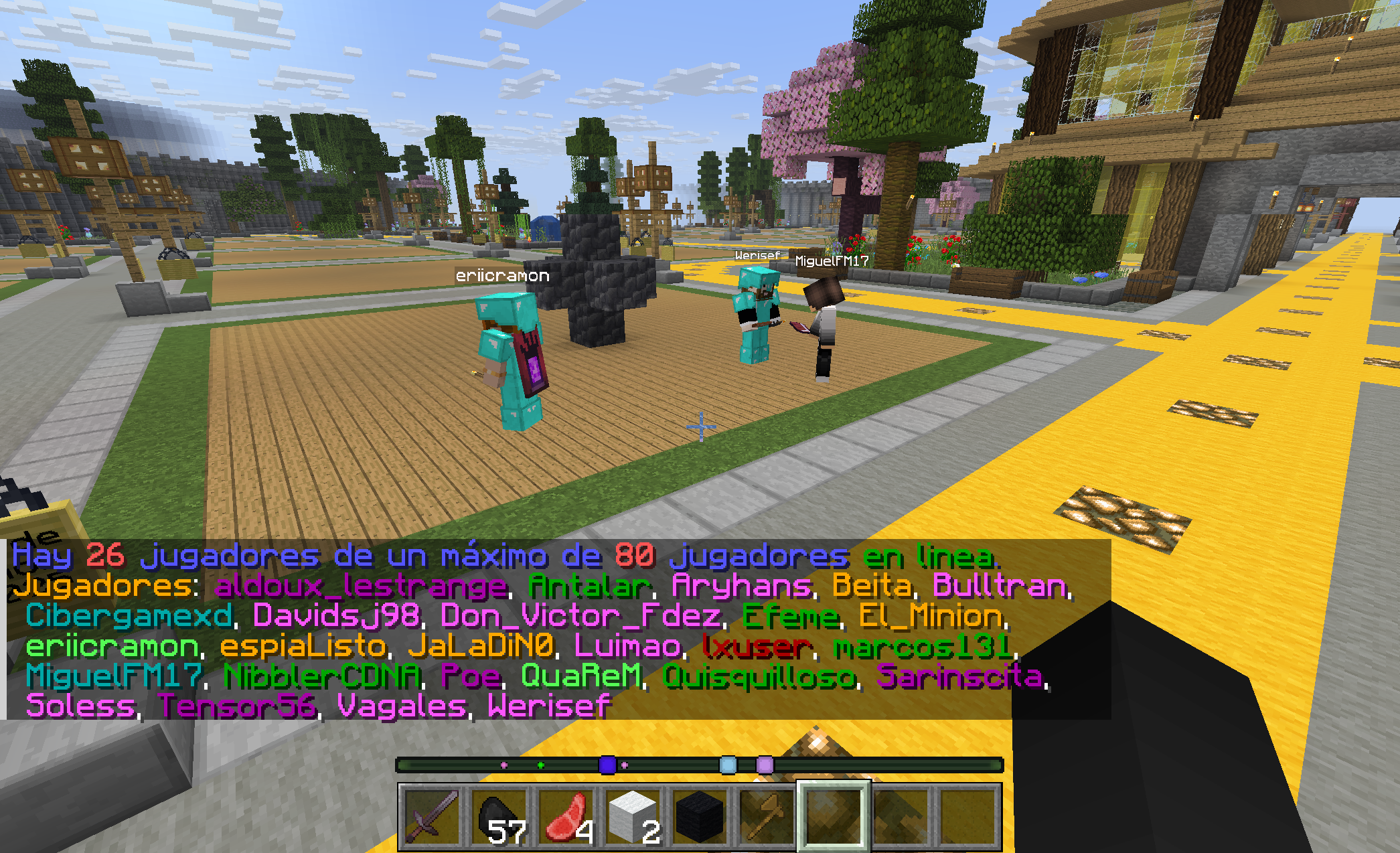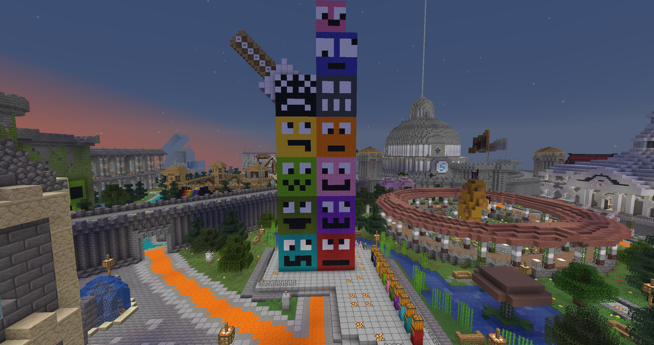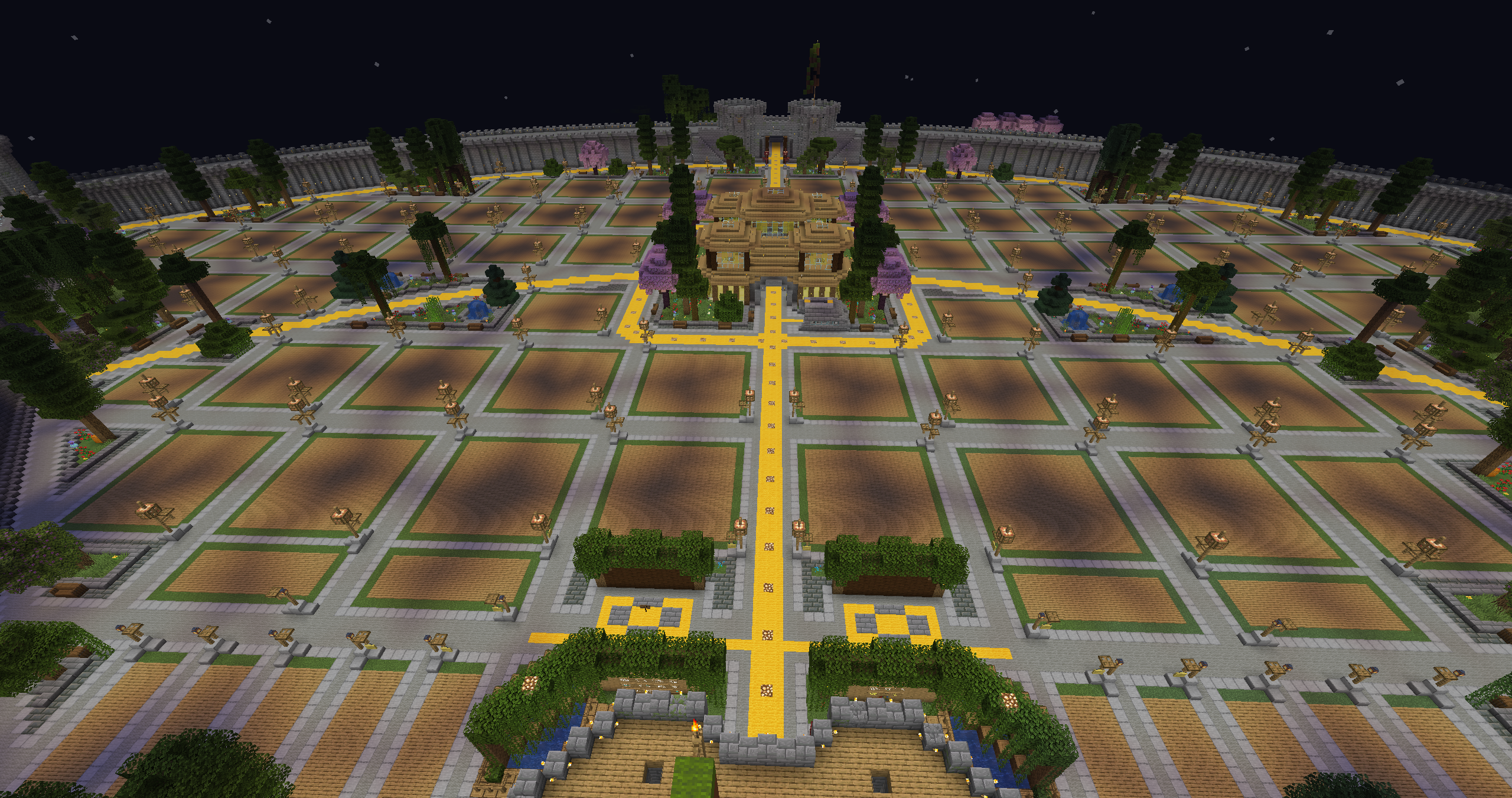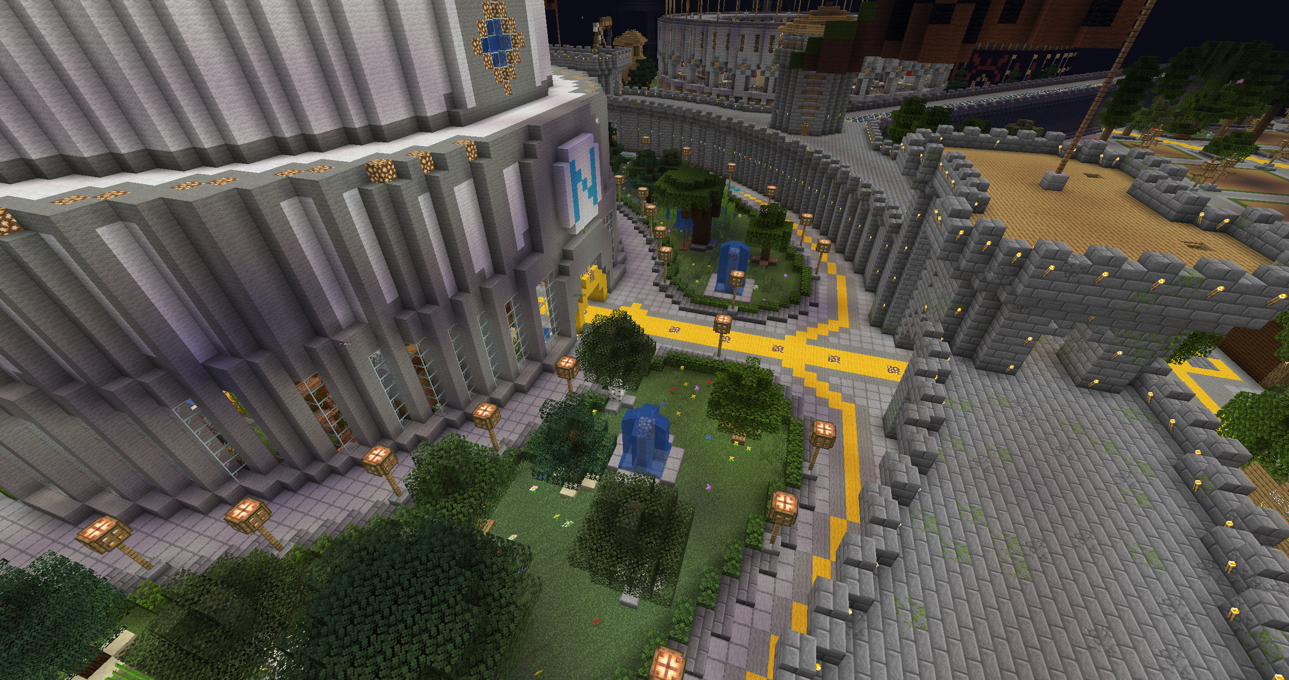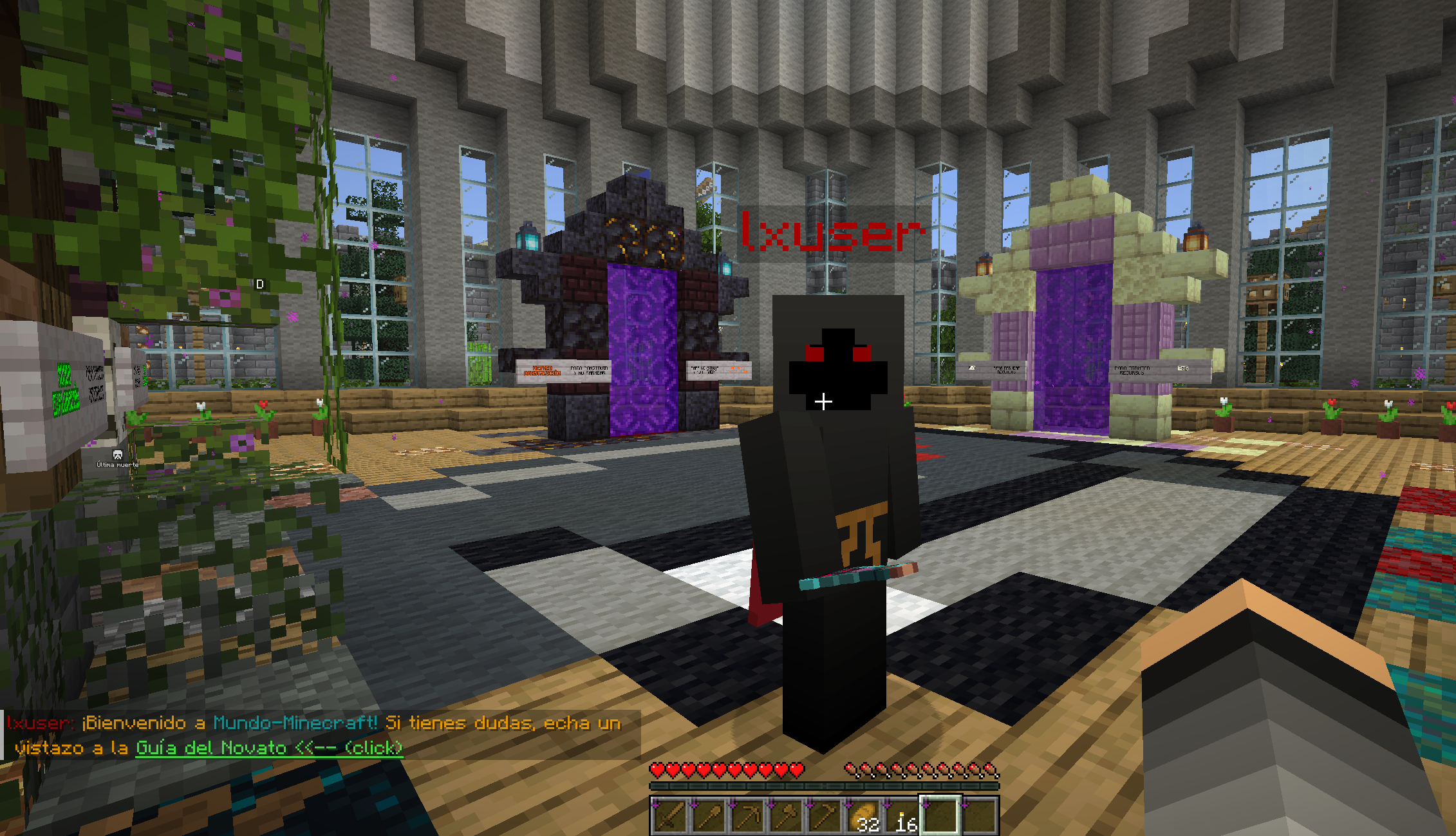 :diamante: Hemos redecorado todo el spawn, los portales han sido cambiados, jardines, las murallas se tocaron un poco, entre otras decoraciones, os iré dejando fotos para que os hagáis una idea clara. Se han eliminado los portales de mundo anarquía y survival y se ha añadido el portal al mundo minijuegos, donde actualmente vamos a empezar con el paintball. El plugin ha sido actualizado por la comunidad, ya que no tenia soporte para la 1.21.8. La idea de este mundo, es ir cambiando los minijuegos cada cierto tiempo, ya sea con skyblock o otros tipos de minijuegos.
