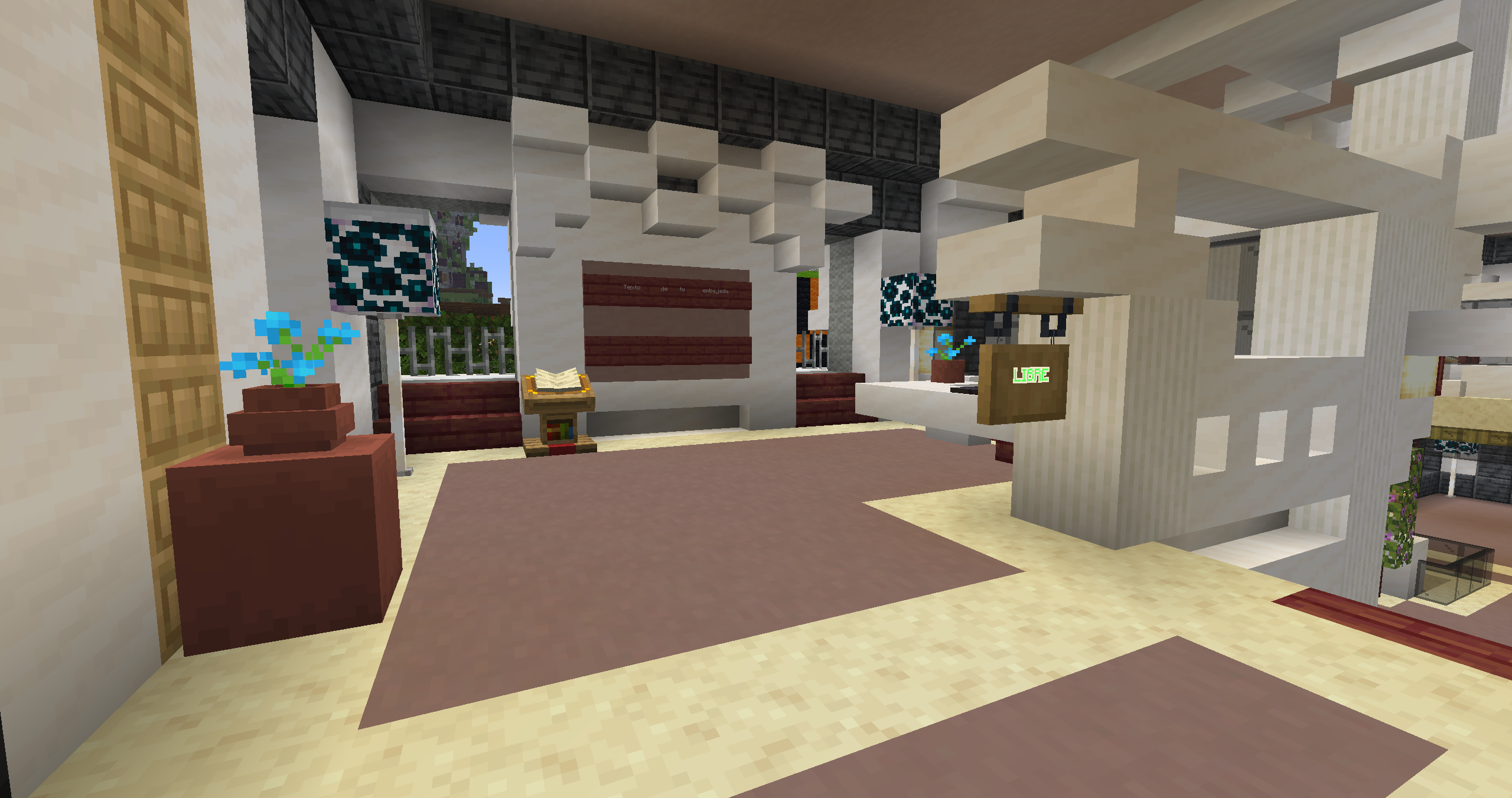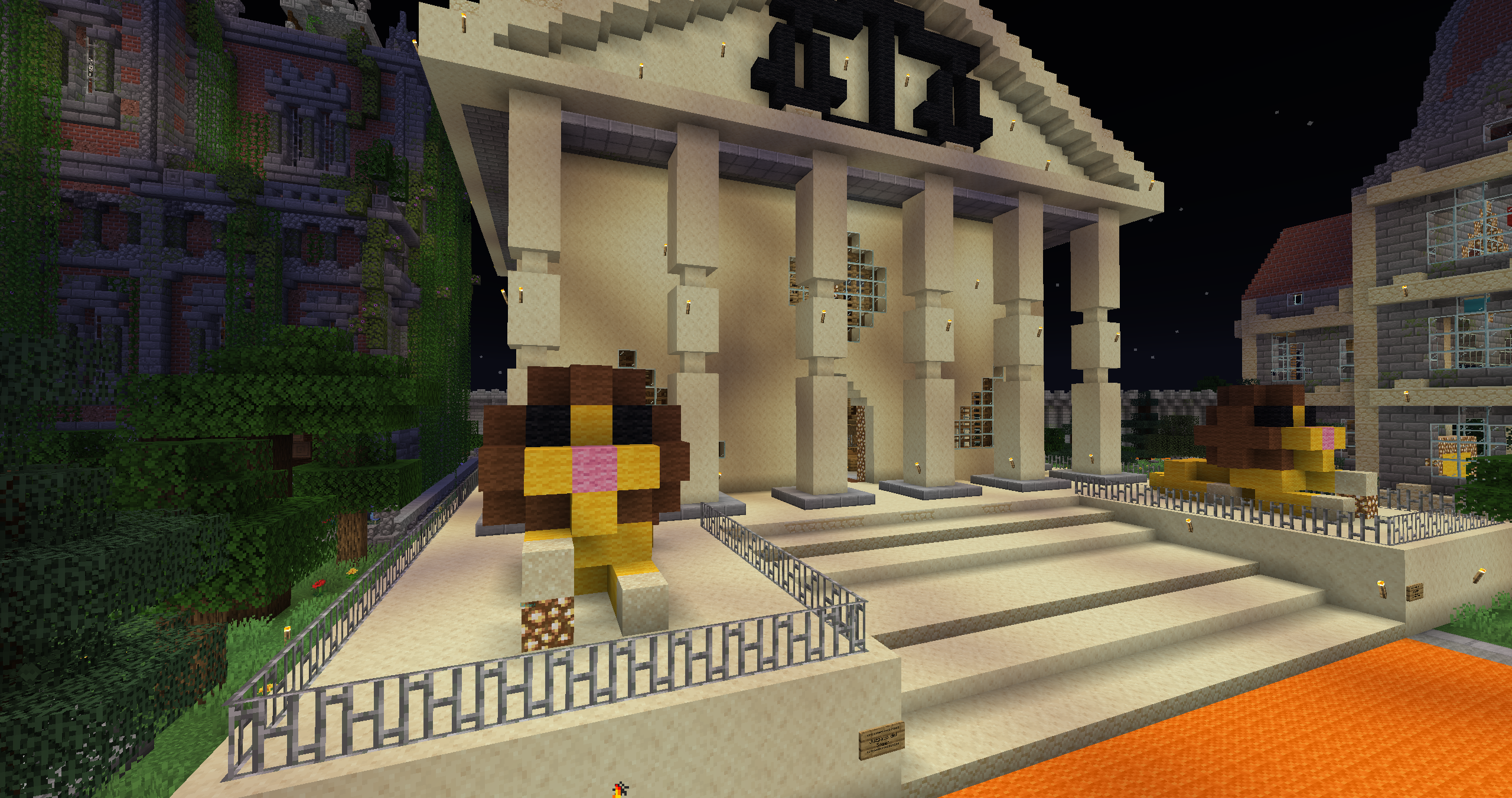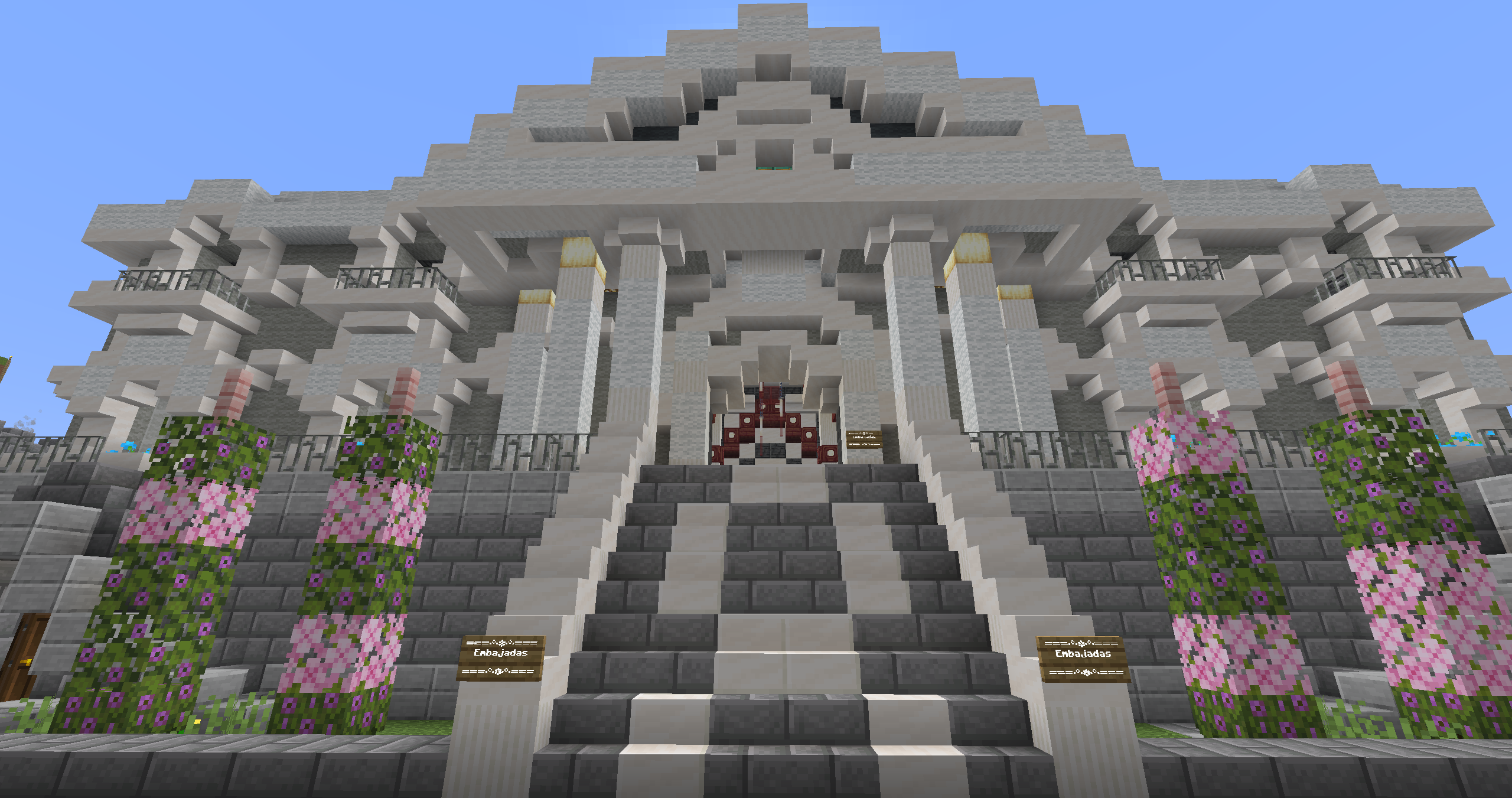 Hablando de la zona naranja hemos cambiado un edificio para darle otro significado y convertirlo en algo funcional... Las embajadas han llegado al spawn, seguramente os estáis preguntando que son estas embajadas, bien, las embajadas es un edificio del spawn, donde cada ciudad podrá tener su pequeño espacio para poner carteles, imágenes, hacer publicidad de su ciudad, hacer reuniones entre ciudades, las posibilidades son infinitas. Para acceder sin tener que caminar, podéis usar el /warp embajadas.