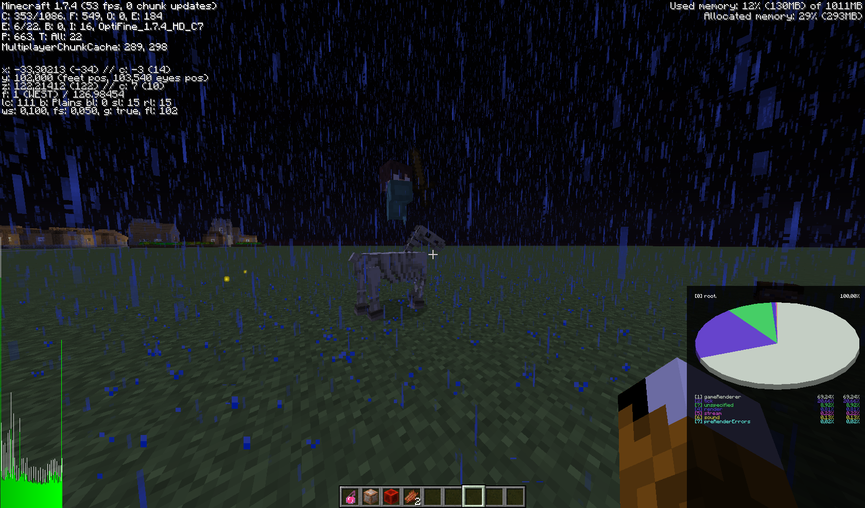 y los efectos de pocion invisibilidad I y Fuerza II.