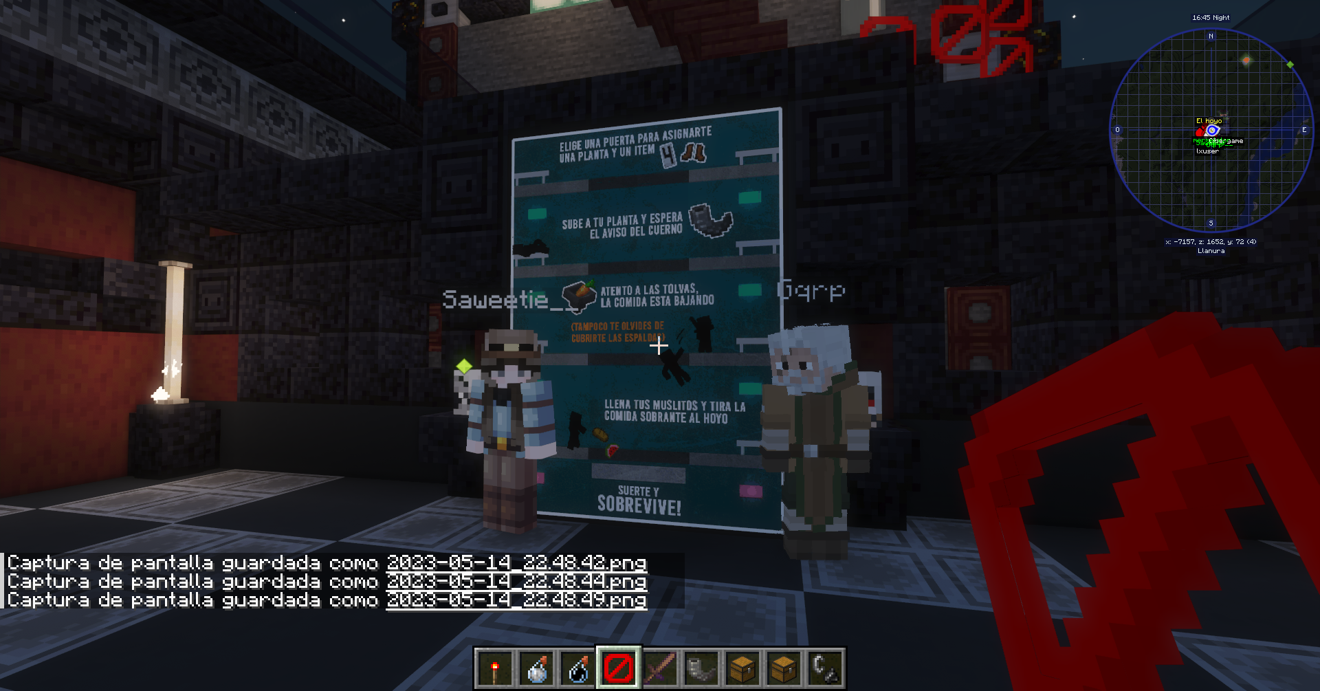 Obviamente el sistema de mesa flotante de la película no es posible hacerlo en vanilla, y si fuera así quedaría horrible y daría bastante lag, así que se ha reemplazado por un sistema de tolvas. Los jugadores deberán coger la comida que pase por las tolvas y usarla sabiamente para sobrevivir.