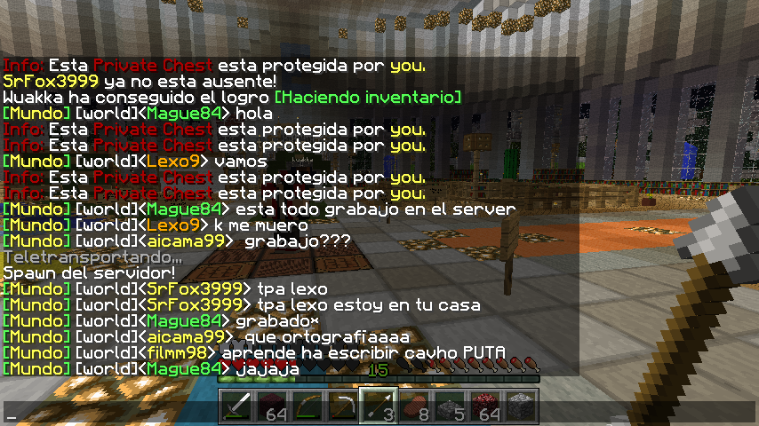 Unos user (filmm98 y aicama99) se han pasado por el general, hemos intentado controlarlos ChicoAzul y yo, y no había manera. Cuando los ignorabamos y yo estaba ayudando a Lexo9 y se han colado en mi casa y me han insultado. Os dejo las capturas: