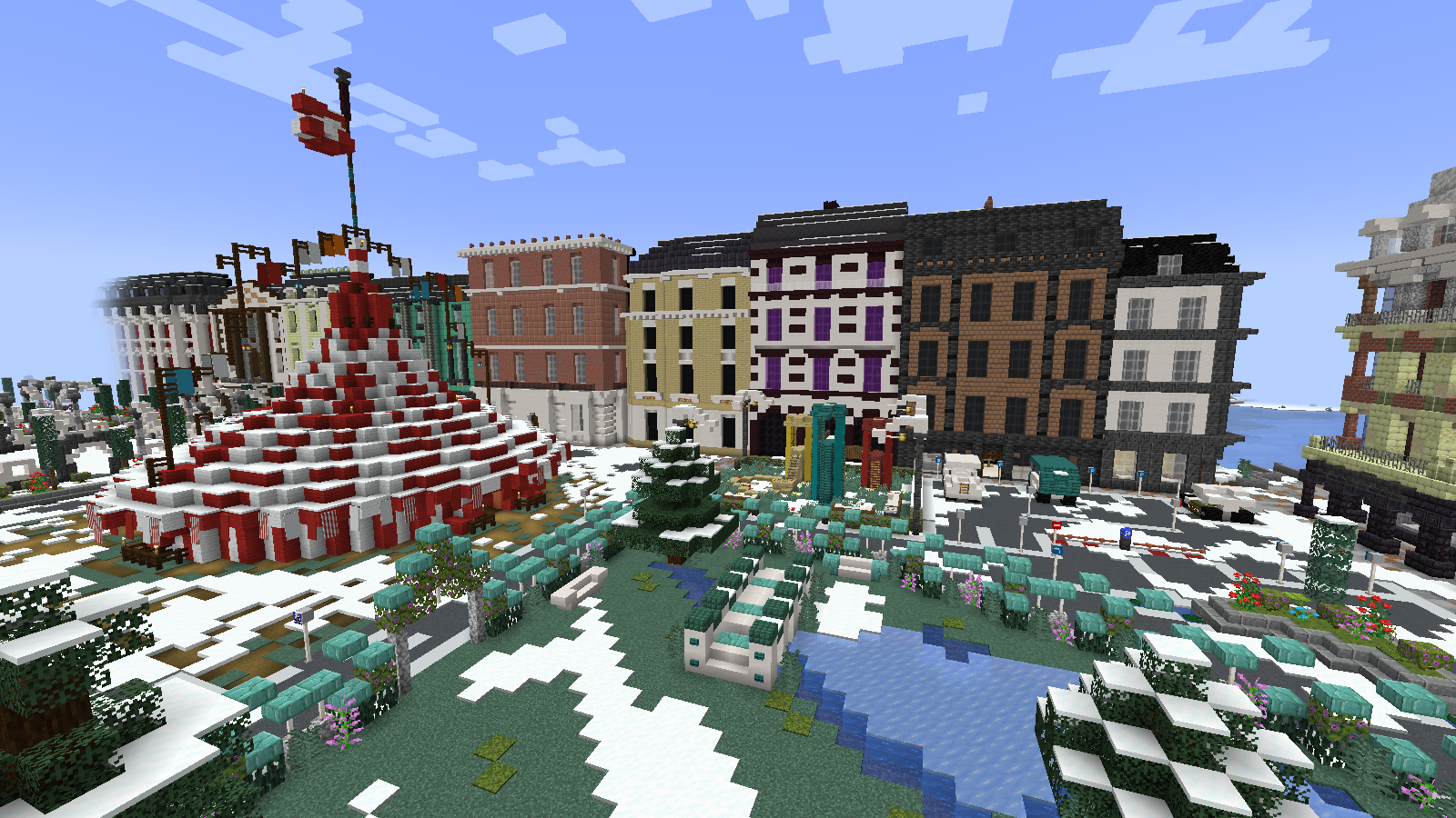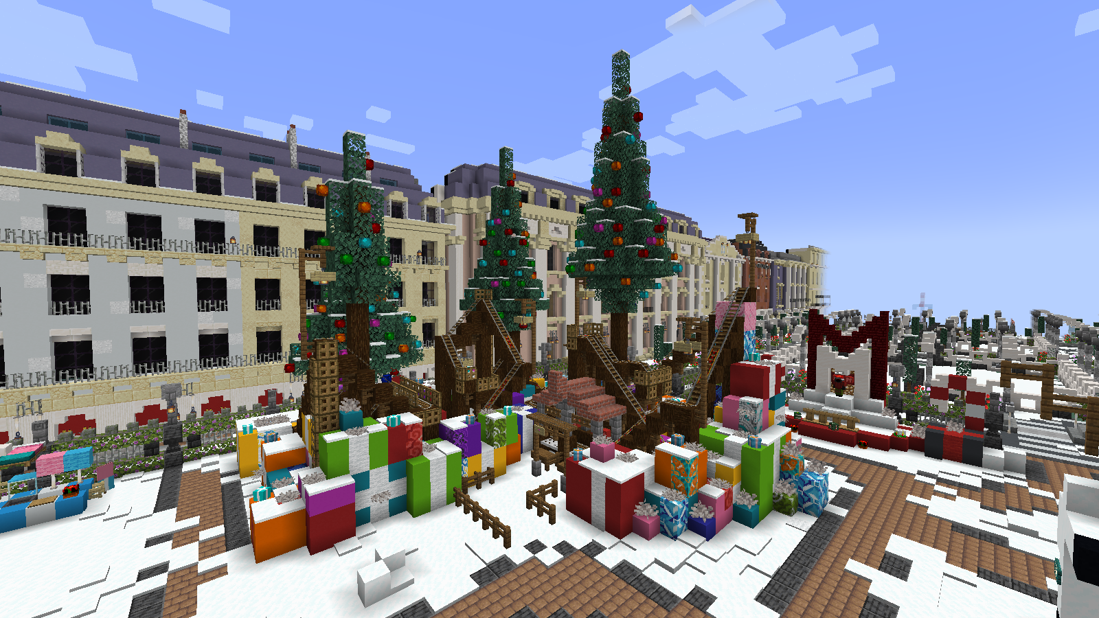 Fácil, hemos creado una mega región (/warp Navidad) recreando cualquier ciudad actual en épocas navideñas. Os recomendamos dar una vueltecilla, pueden haber sorpresitas