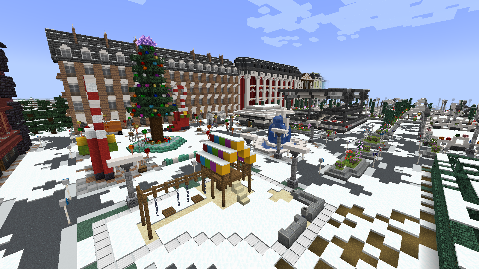 Fácil, hemos creado una mega región (/warp Navidad) recreando cualquier ciudad actual en épocas navideñas. Os recomendamos dar una vueltecilla, pueden haber sorpresitas