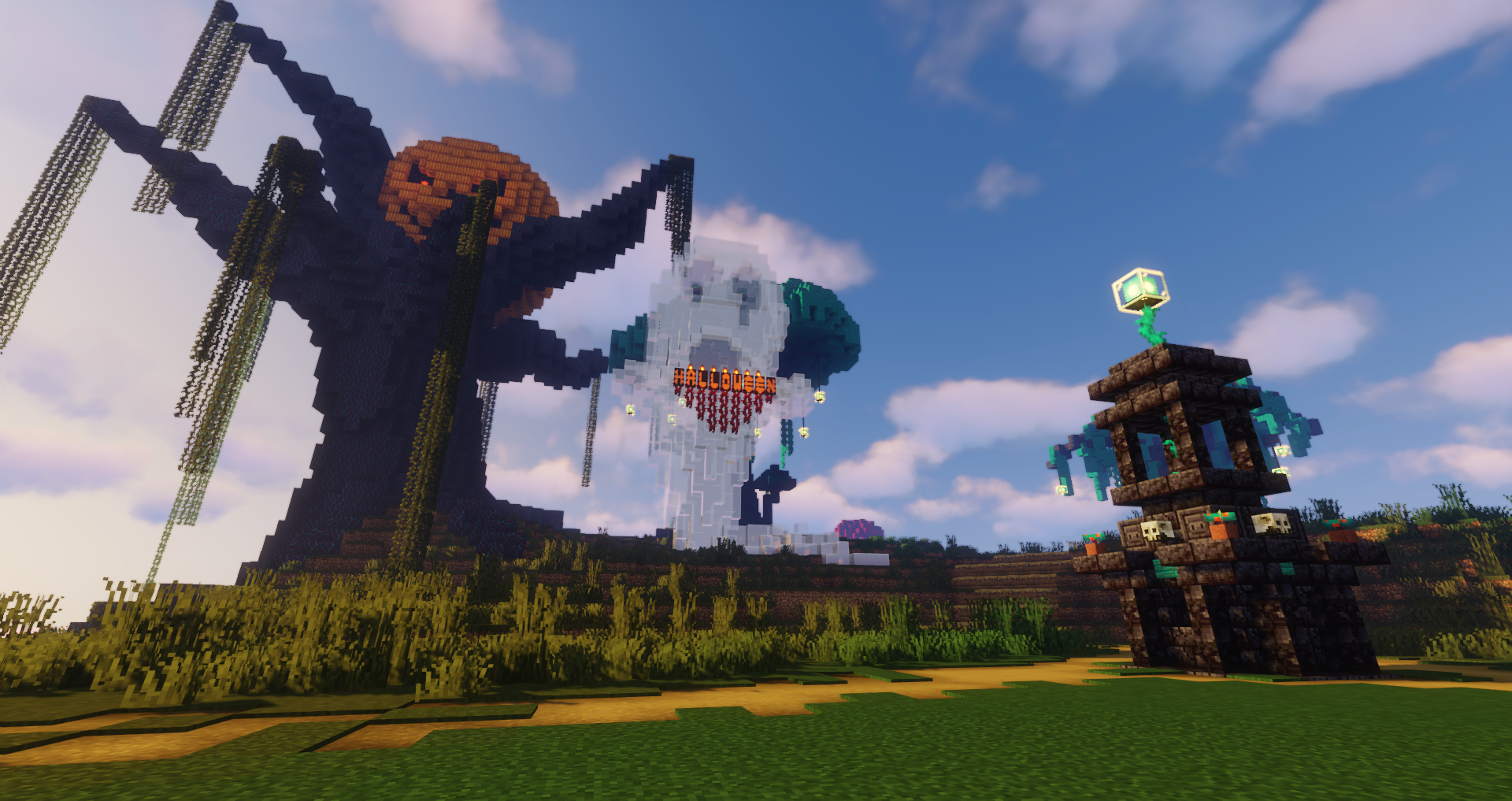 Cuenta la leyenda que en mundo minecraft un antiguo constructor y que también fue muy buen agricultor, cosa que no les voy a contar, dejó su espíritu deambulando por mundominecraft, se hacía llamar Tío Sam y ahora con aspecto de fantasma lo podrás encontrar, ya que de su cuerpo se separó y otro rumbo este tomó, cada cierto tiempo busca constructores que sean mejor que él y hace distintos desafíos a construir, esta vez pone a prueba la imaginación de los habitantes del lugar y en halloween los quiere hacer pensar.....