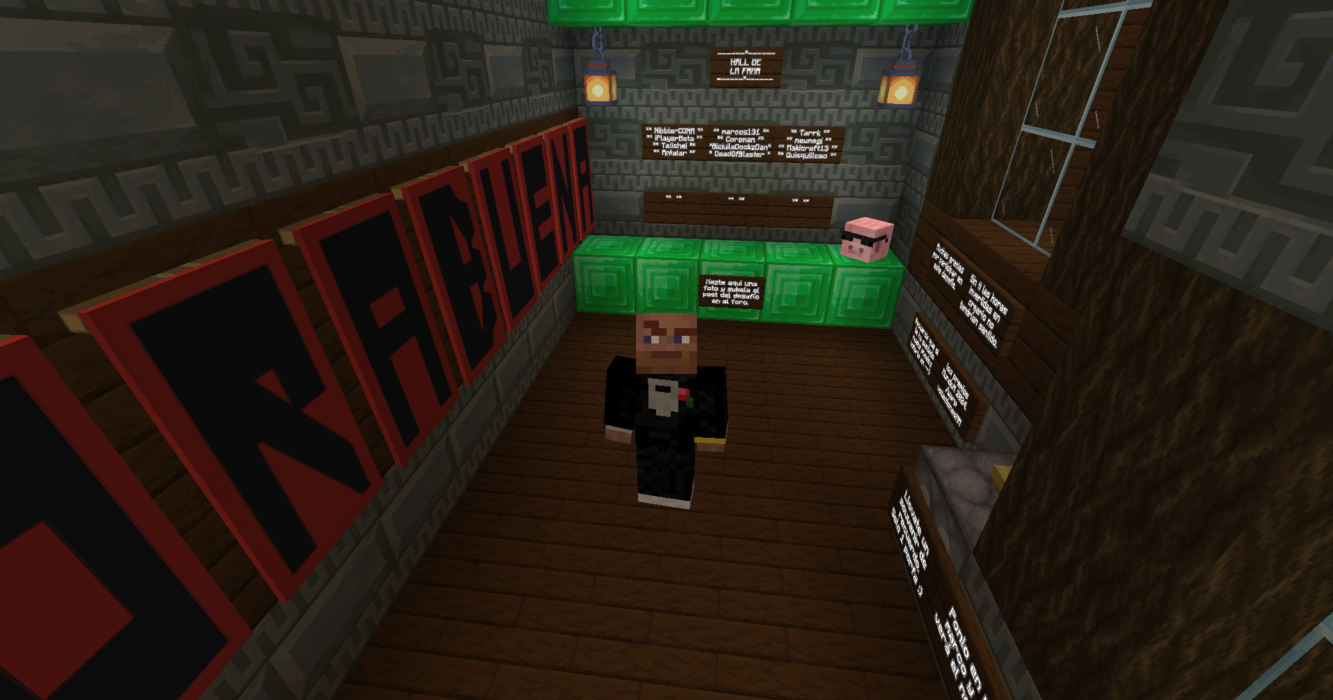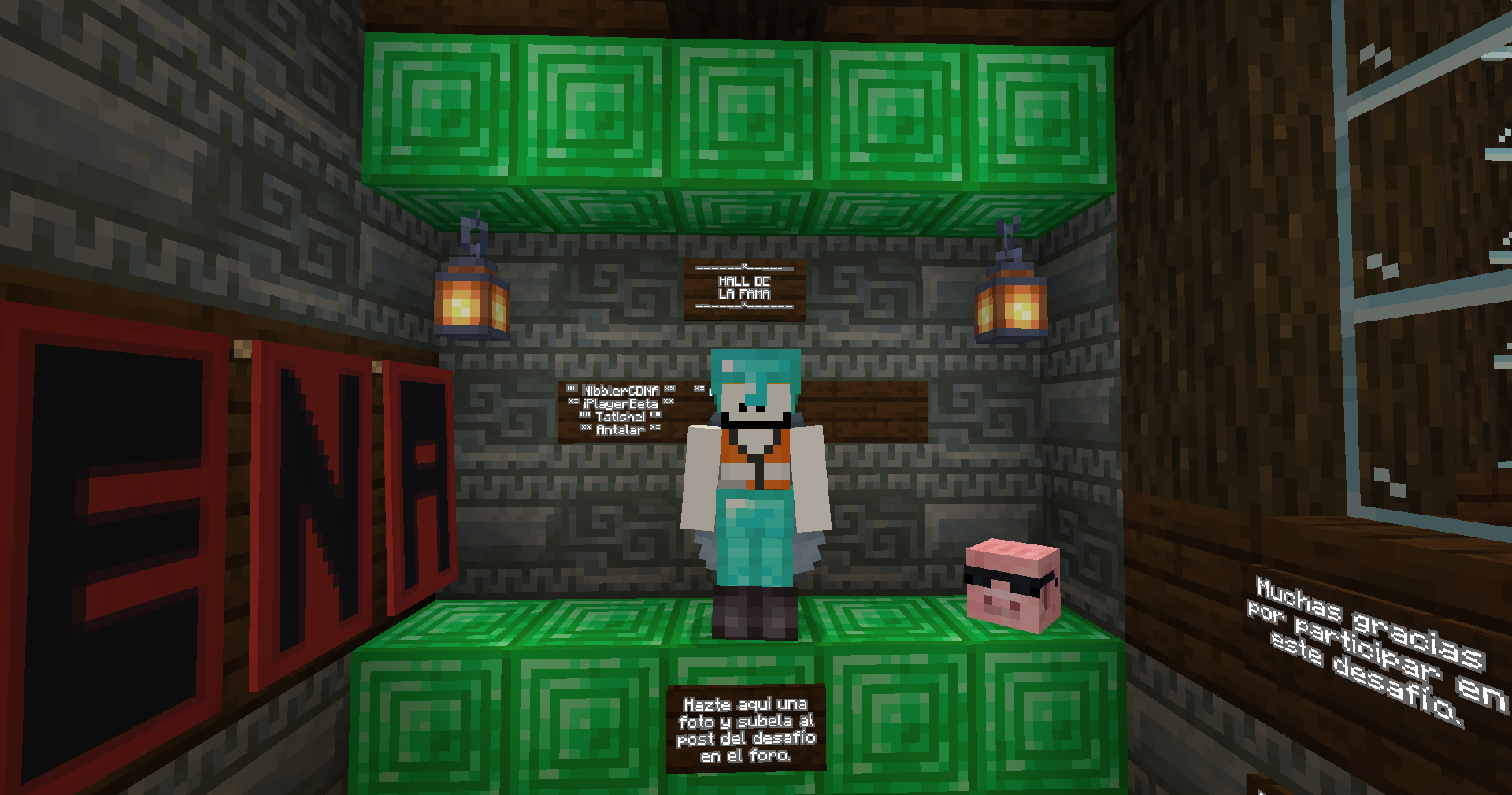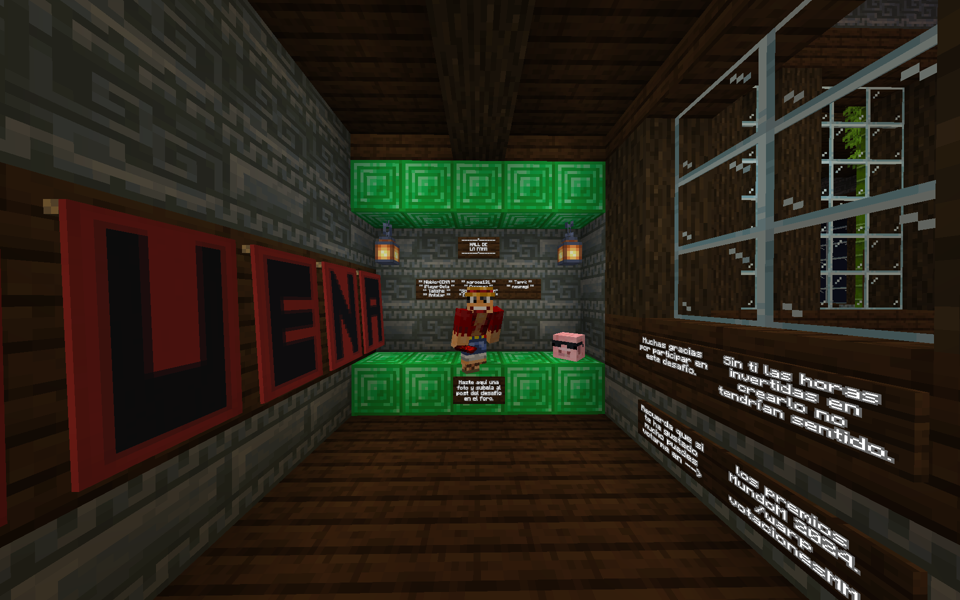 Buenas server, después de un largo tiempo de ausencia vuelvo para traeros un desafío que pondrá a prueba vuestra habilidad, inteligencia, perseverancia y conocimientos. Se trata de una mansión con 10 salas que deberéis completar resolviendo distintos puzles y desafíos. Está todo completamente automatizado con redstone así lo que no necesitáis que esté yo allí para jugarlo. Es un reto individual por lo que NO podéis venir en grupo, si ya hay alguien en la mansión tendréis que volver mas tarde o esperar a que el que va por delante haya resuelto ya al menos 5 salas. Si aceptáis el reto podéis venir escribiendo "/warp cerdorojo" o para los mas survival cogiendo el metro oeste (el azul) ya que está a unos 700m del /spawn por lo que se llega en un minuto.