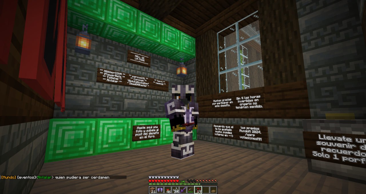 Una vez hayáis completado todas las salas haceos una foto (F2) en la sala final y subidla en este post o guardad un /home y avisadme para mostrármelo dentro del juego, así pondré vuestro nombre en el hall de la fama de la sala final. Recomiendo tener un /home libre por si queréis descansar en algún momento y volver mas tarde.