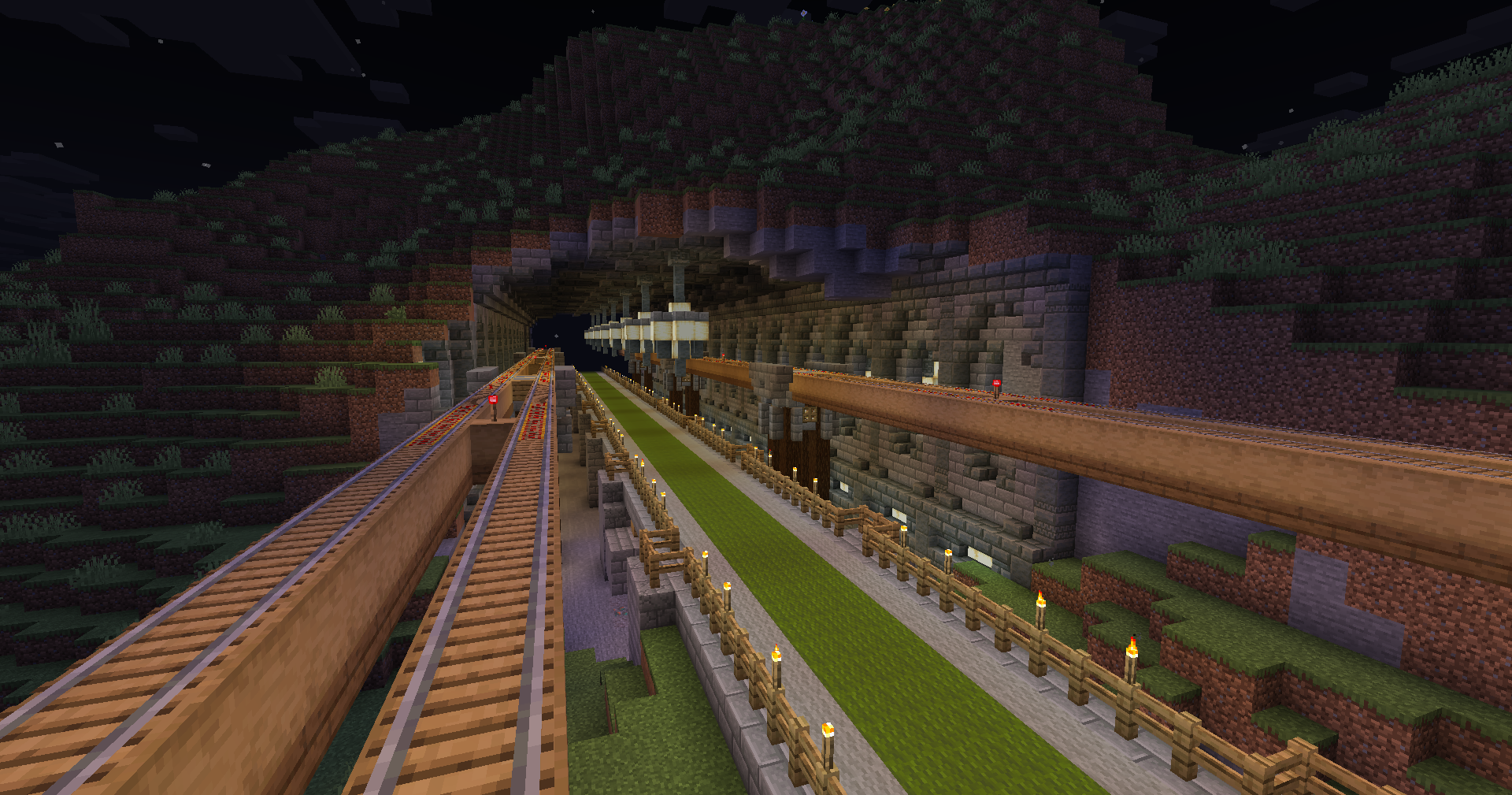 Si continuamos por la vía saldremos a superficie, fuera del spawn y alejandonos del mismo en dirección al fin del mundo