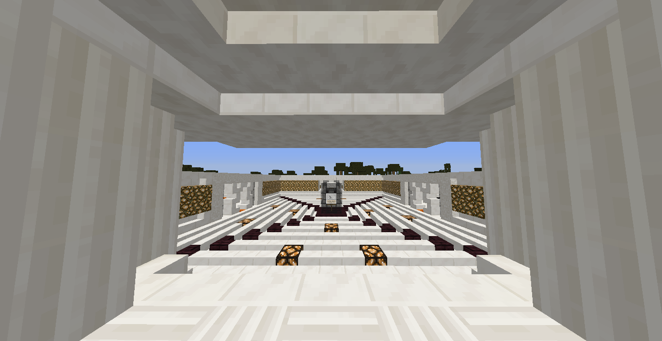 Museo terminado. Capacidad máxima 201 cabezas: 120 Veteranos, 27 Vips, 15 Arquitectos, 15 Mods, 22 Mobs, 1 Creador del Museo y 1 De lxuser. Actualmente teniendo 101 cabezas procuro aumentarlas. Esta creación me ha costado mucho tiempo en obtener las cabezas. Quiero darle las gracias a todas las personas que me han donado cabezas, a Cerdamen por poner una gran cantidad de lava, a Shade2105 y a 1Luna por verderme las cabezas de wither esqueleton mas baratas y por ultimo lo mejor, a mis aldeanos para obtener una buena cantidad de dinero gastado si me olvido de alguna persona lo siento mucho. Y ahora unas fotos.