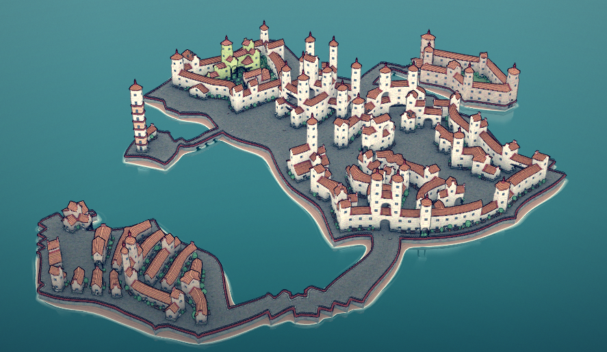 Construye bloque a bloque pintorescas islas con sinuosas calles. Puedes construir desde pequeñas aldeas hasta altas catedrales, redes de canales o ciudades flotantes.