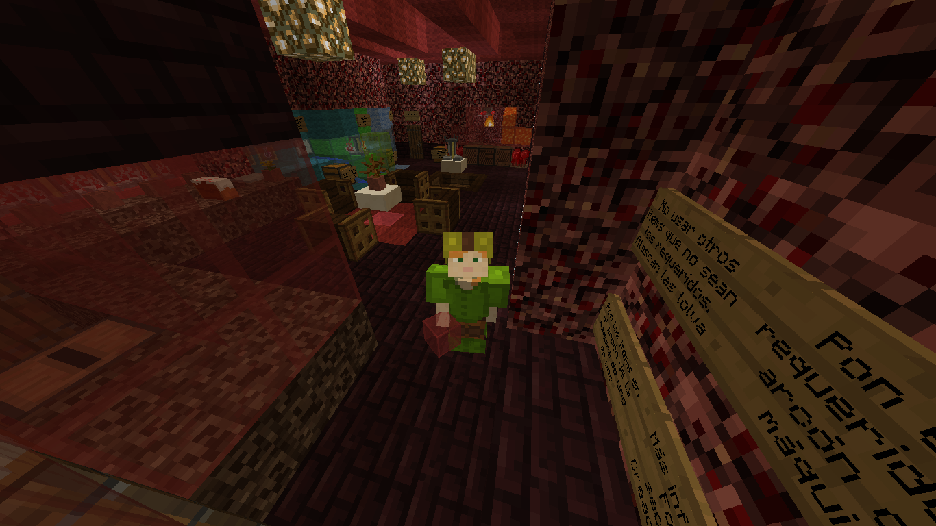 La máquina cian puede dispensar aleatoriamente cualquier de estas consumiciones: Curación+, Visión nocturna+, Invisibilidad+ e Ignifugo+ al cambio de un lingote de oro.