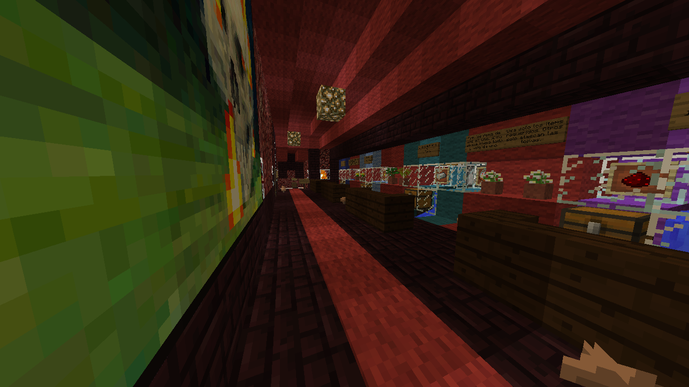 Zona Vending: Instalaciones de trueque con cuatro máquinas dispensadoras de alimentos: Galletas a cambio de un redstone, Pastel de calabaza a cambio de una pepita de oro, Tarta a cambio de un lingote de hierro y finalmente Patatas cocidas a cambio de un redstone.