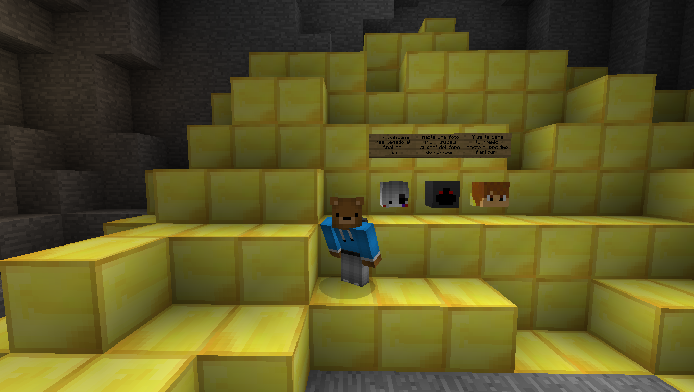 Holas a todos! Me ha encantado el parkour y gracias por las colaboraciones! Mi nombre de MC es: iLuckyRobot El /home guardado es "/home parkour". PD: Ojalá podais seguir haciendo parkours XD.