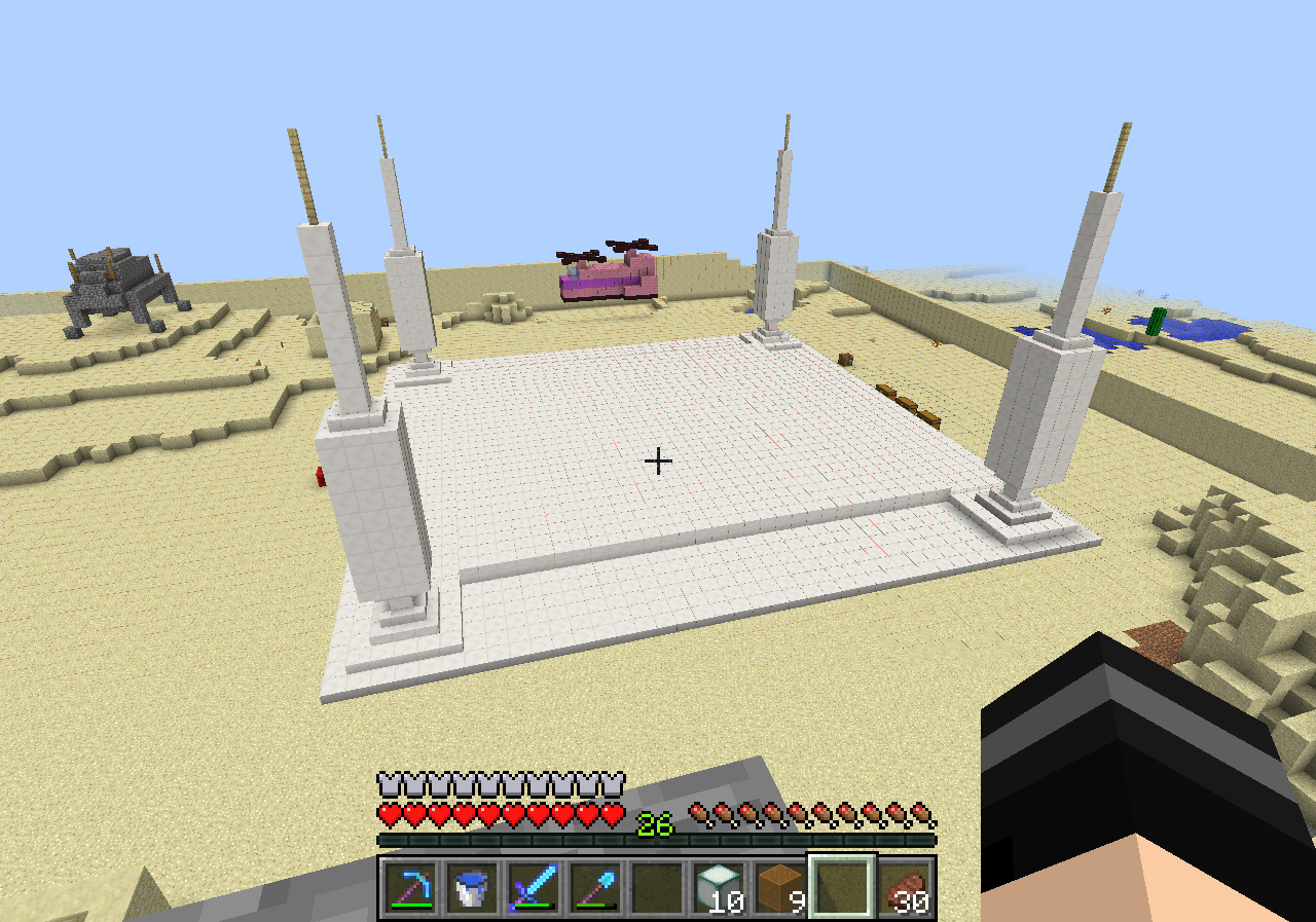 Los materiales que utilizaré en principio serán Arenisca, Cuarzo, Piedra, Madera, Ladrillo, Andesita pulida, lana y Bloques Redstone.