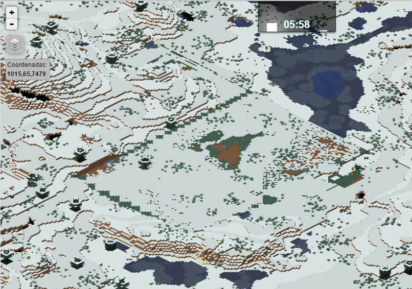 Para la ubicación he buscado un sitio nevado (para que la ambientación sea como al final de la película) y bastante llano para evitar tener que hacer mucha explanación y no alterar demasiado la orografía. Lo he encontrado al este del monumento Hotel Helado (lo que además resulta muy apropiado, aunque este hotel no sea el Overlook :) ), sólo he tenido que quitar cinco árboles, y la tierra necesaria para rellenar un par de pequeños lagos y una zona más baja ha salido de la quitada de las zonas más altas. En total el desnivel salvado no ha pasado de cuatro bloques entre el punto más alto y el más bajo.