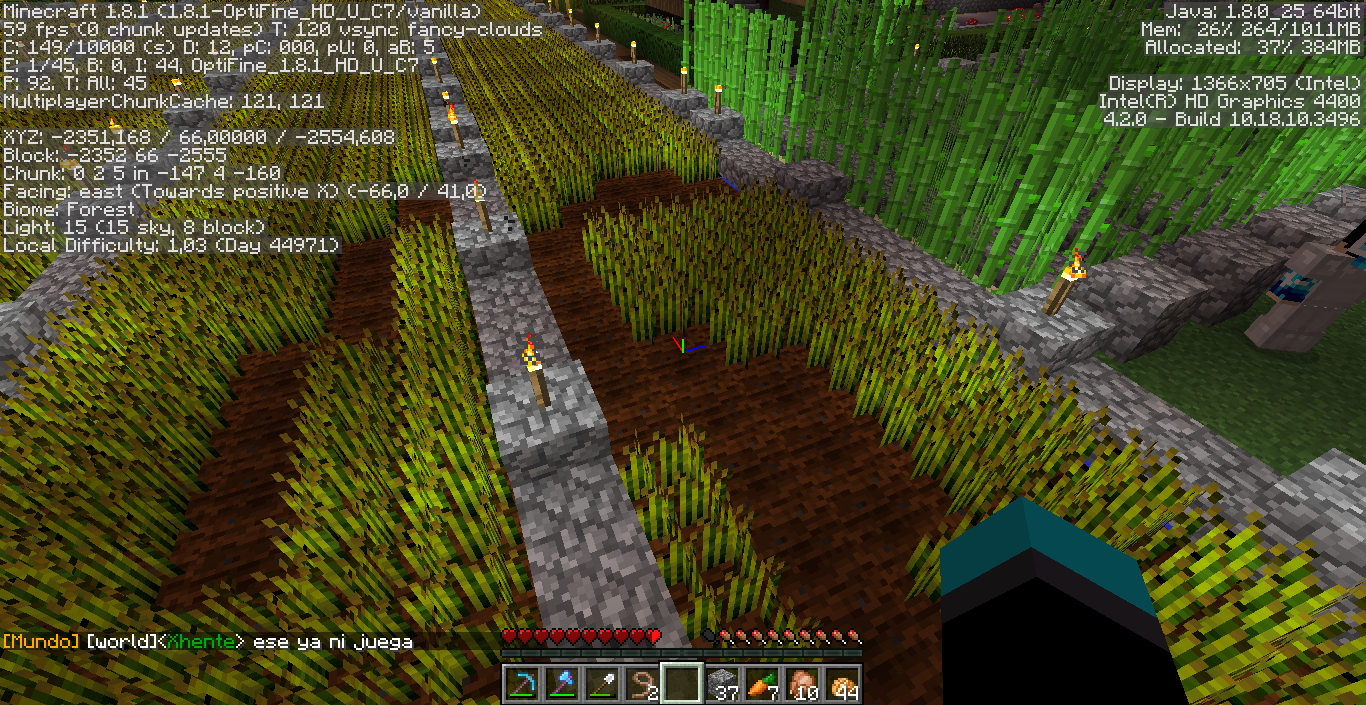Como no hay ningún asistente ni moderador in-game dejo aquí las fotos con las coordenadas. No han replantado las verrugas infernales, la mitad de las cañas de azúcar y algo de trigo.