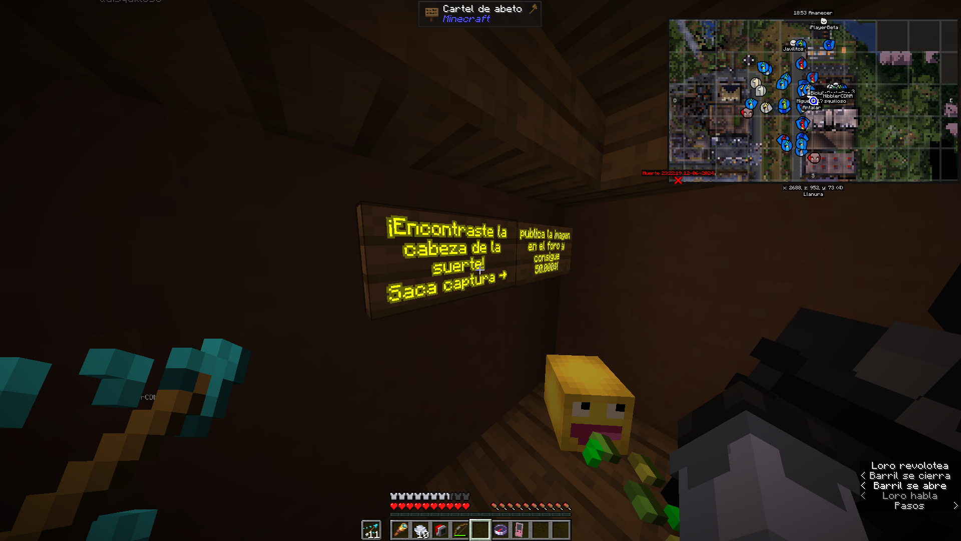 El clásico juego de "Simón Dice" adaptado a Minecraft. Solo sigue las instrucciones correctas de Sarins ("Simón")... ¡pero cuidado! Si caes en la trampa o no eres lo suficientemente rápido, quedas fuera.