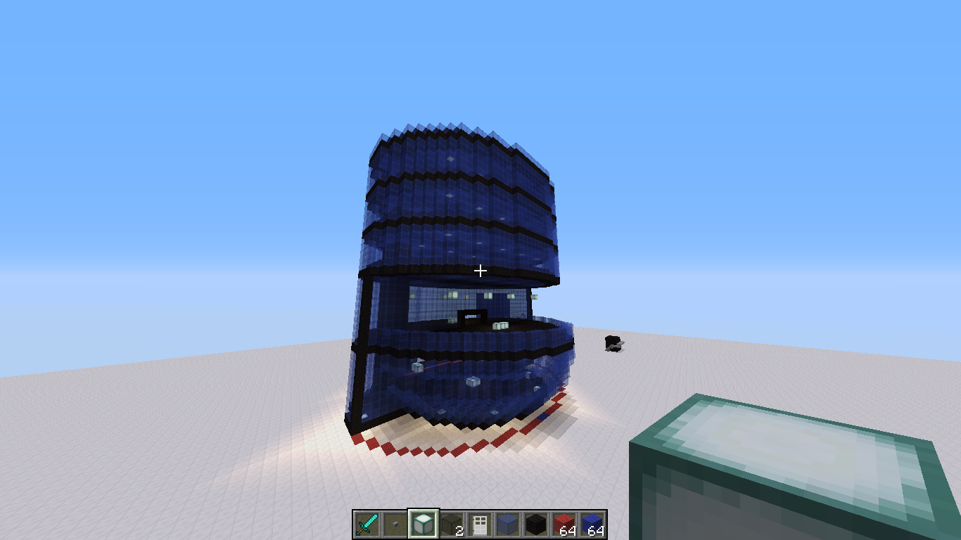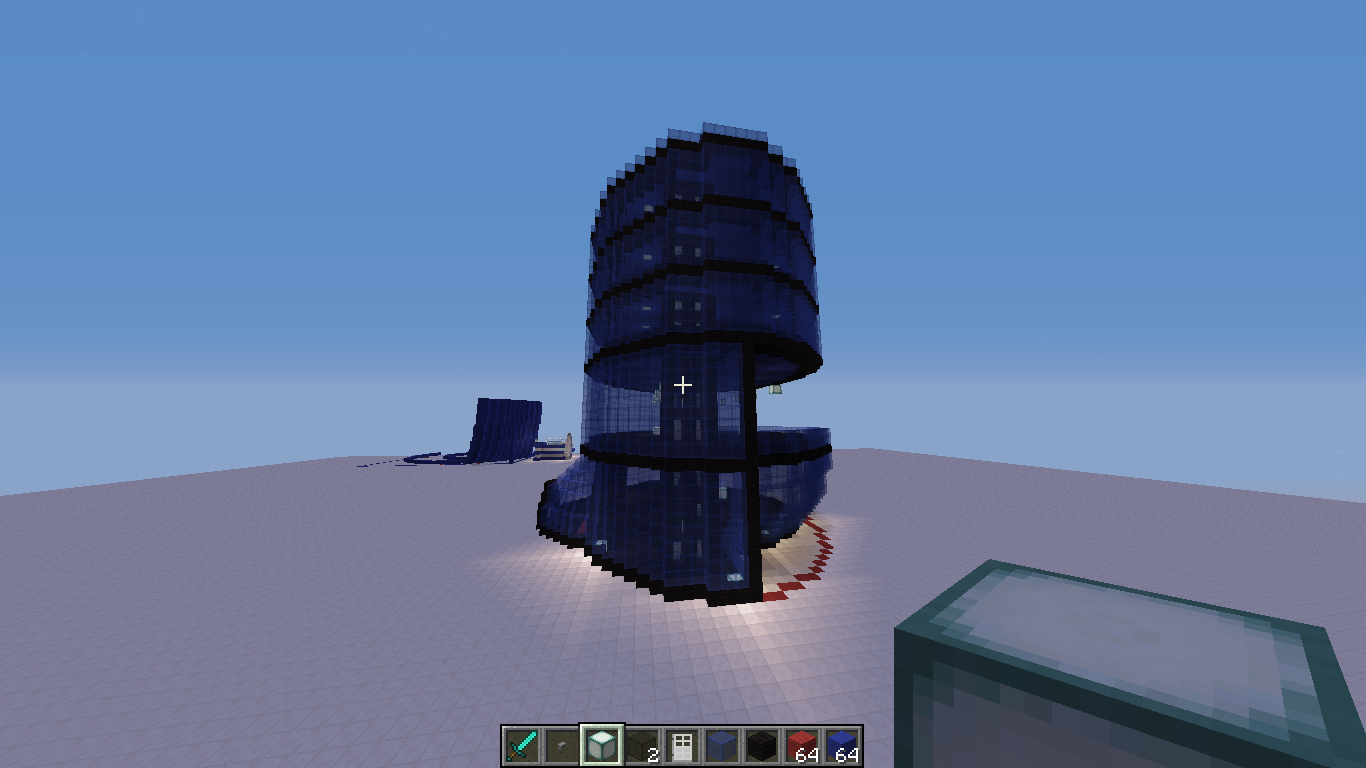 También me gustaría participar, pero aprovechando que el minecraft no esta sujeto a las leyes físicas prefiero ir por libre con una torre funcional de cristal cuya altura es el techo del server. Aquí dejo lo que es un boceto del Edificio Tritón.