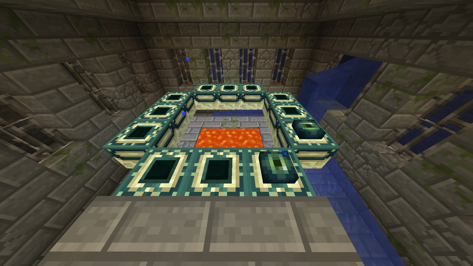 No recuerdo en que versión ni hace cuantos años fue cuando buscamos el portal del end y lo encontramos idéntico, debajo del agua. Juraría que fue en el reinicio del anterior mapa hace 5 años o así. Sera que suelen salir así o son casualidades...