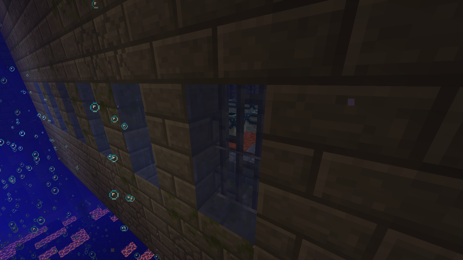 En esta ocasión me encontré una cosa muy chula y muy rara a la vez; Un stronghold acuático, si si, lo que vieron. Resulta que mientras exploraba, me encontré esta generación to' rara, y lo mejor de todo es que no estaba raideado, así que podría decirse que ya solo quedan 2 strongholds sin explorar (porque esta ya lo recorrí de arriba a abajo por todo el LOOOT!). Aquí van las fotos del suceso.