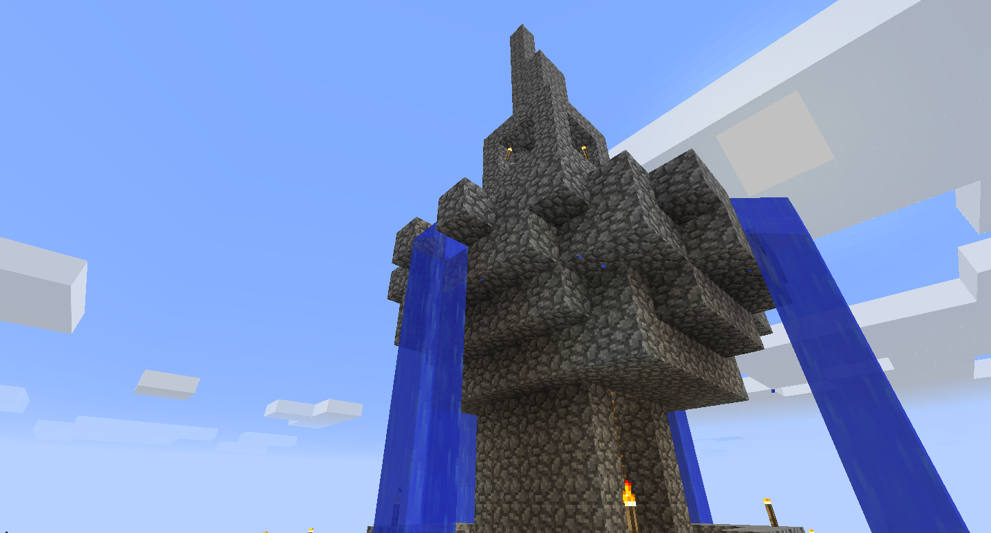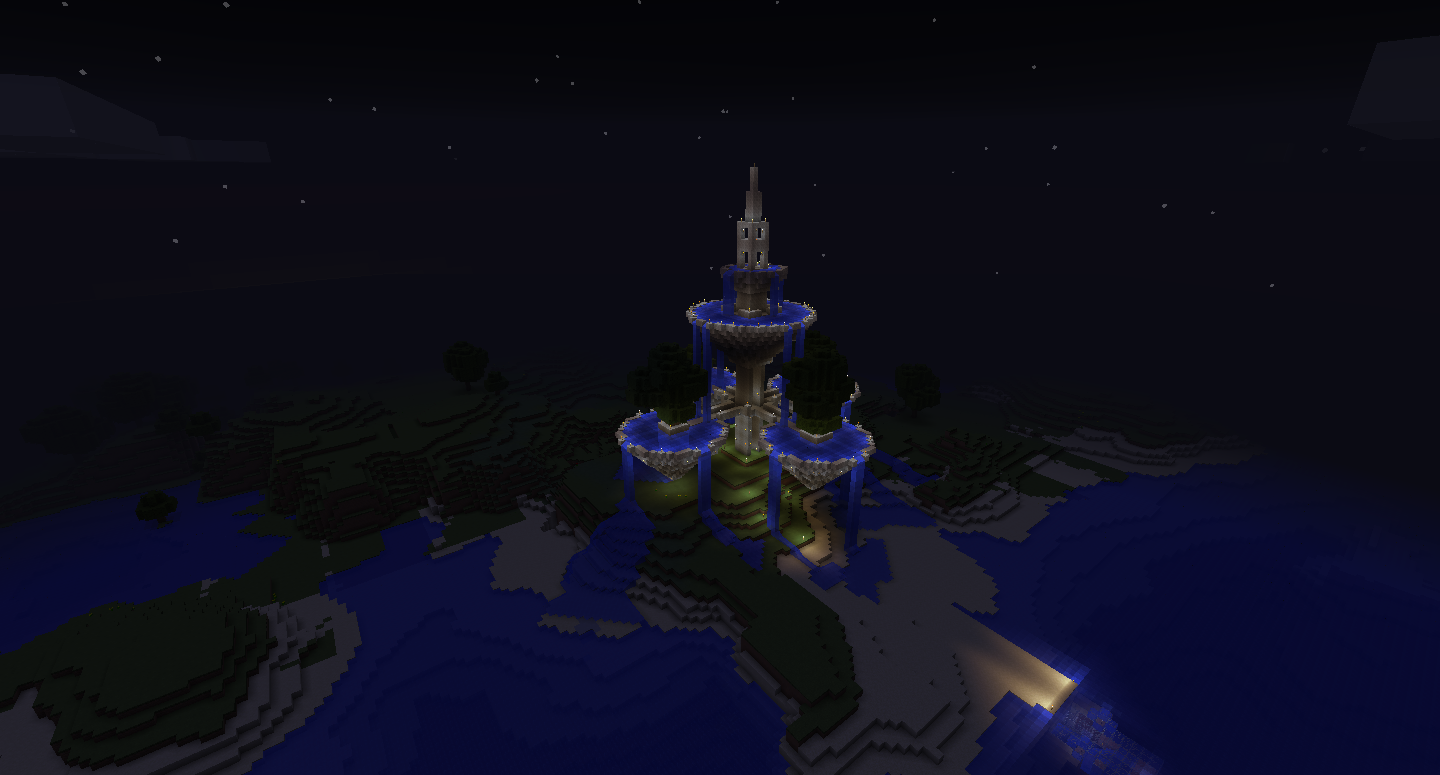 Soy nuevo aquí aunque llevo mucho tiempo jugando en el modo survival. Hay un proyecto que considero que me quedó muy bien (modestia aparte ejem ejem :P ) y he pensado en traerlo aquí. Es una torre con grandes cuencos de agua que caen de uno a otro y con vegetación. Lo llamo la Torre del Agua. Añado unos cuantos pantallazos que he hecho.