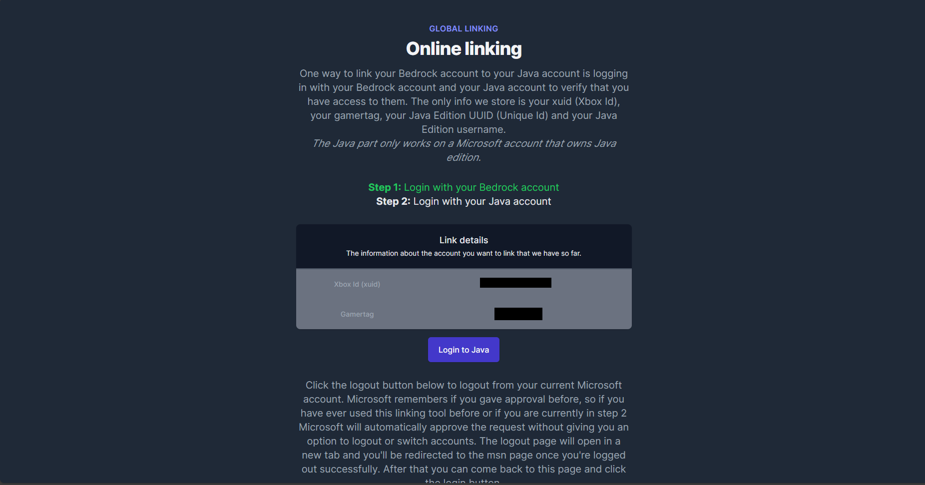 Esto el desarrollador del plugin que utiliza el servidor ya lo previó, facilitó una web para vincular ambas cuentas y poder ingresar con tu personaje Java.