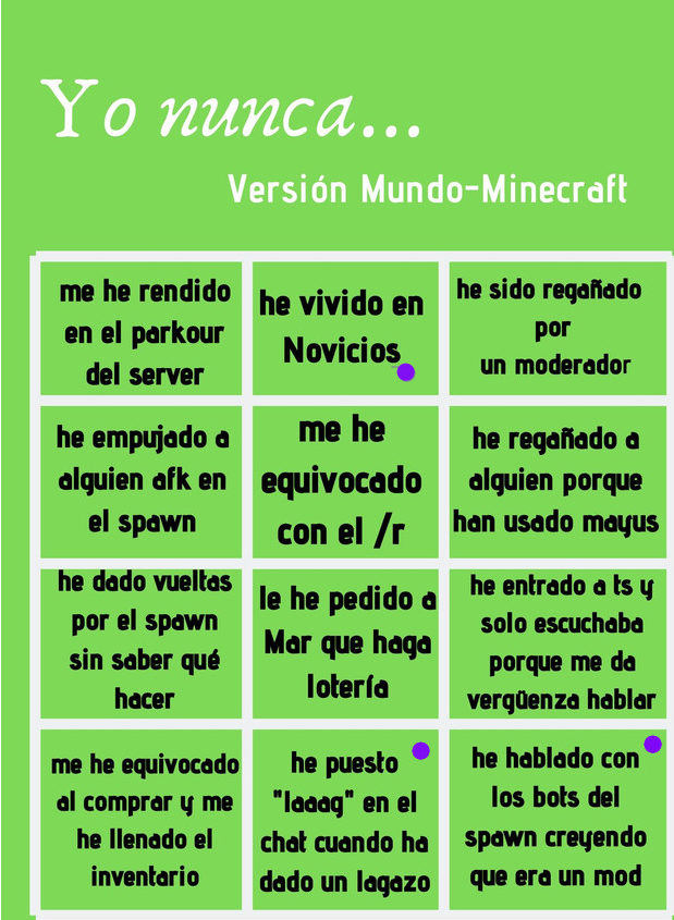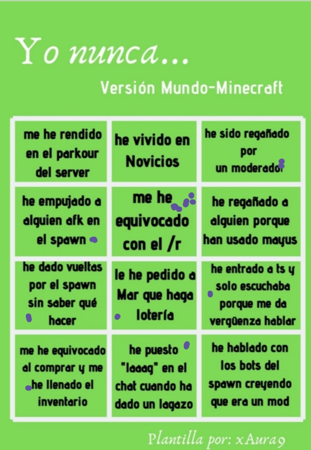 Este juego lo he jugado ya con mis amigos (en la vida real) y esta divertido. Vamos a darle por aquí (lo que redondeo en morado es lo que Sí he hecho).